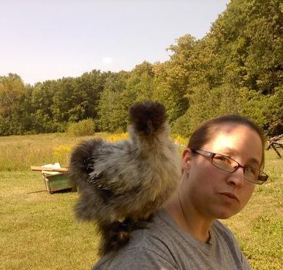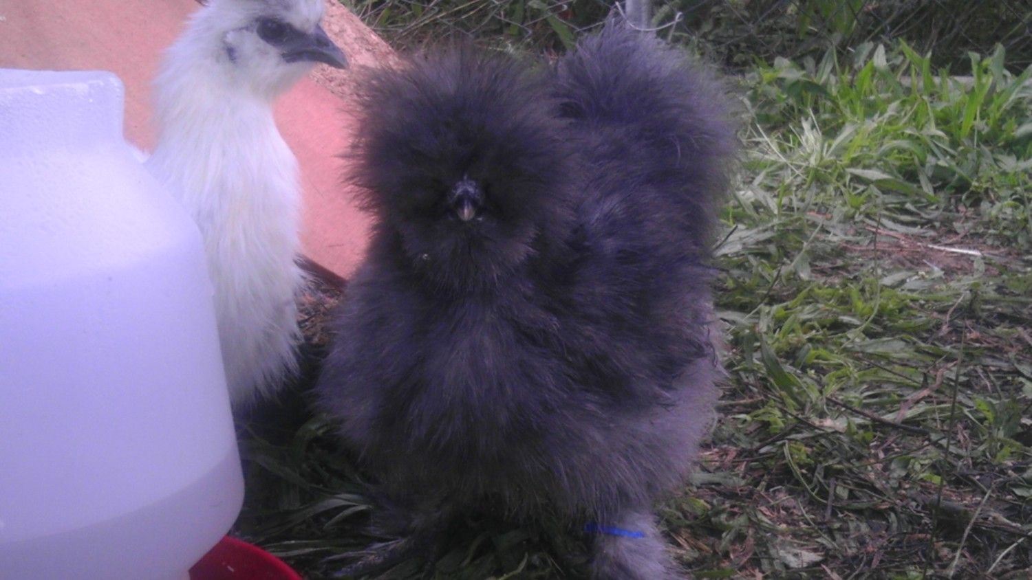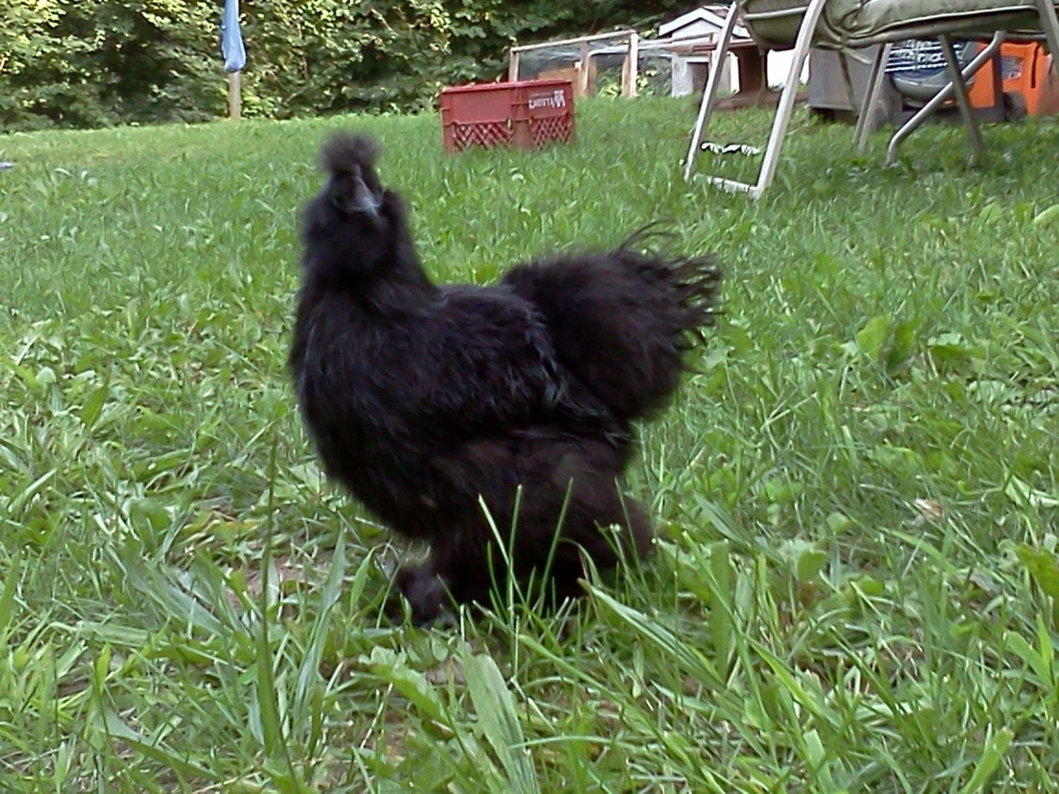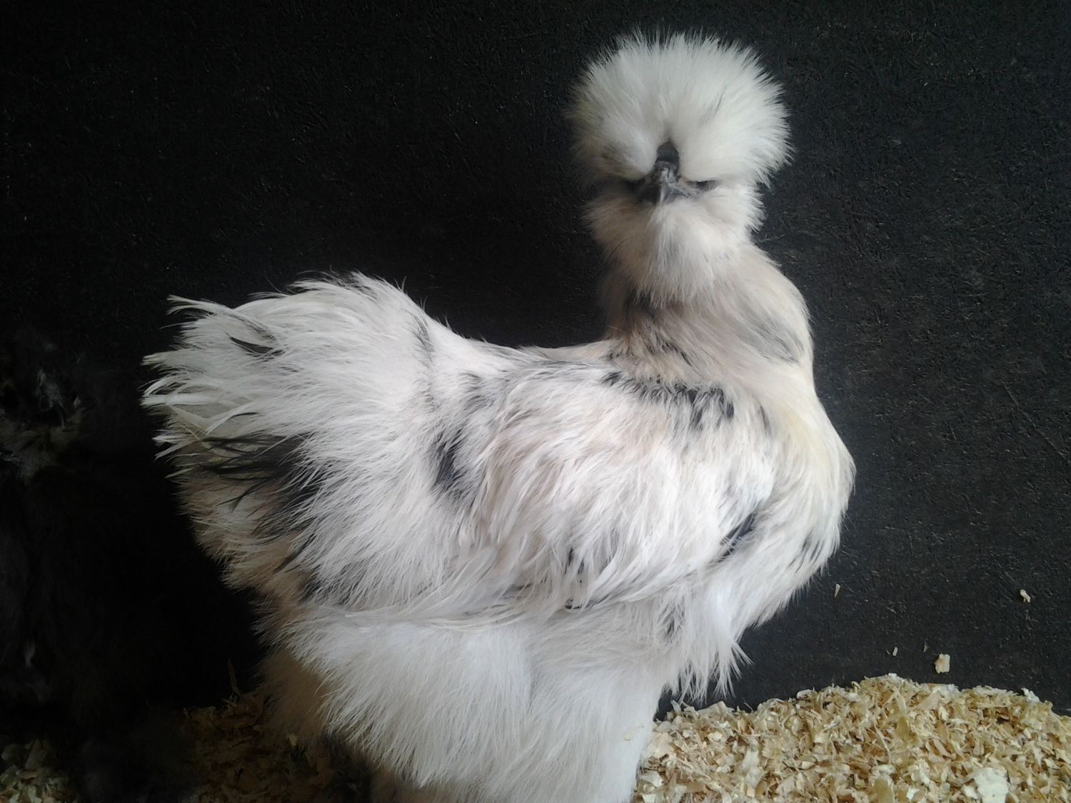 one of my silkie roos, this years hatch. He sits on my shoulder to come in every night.