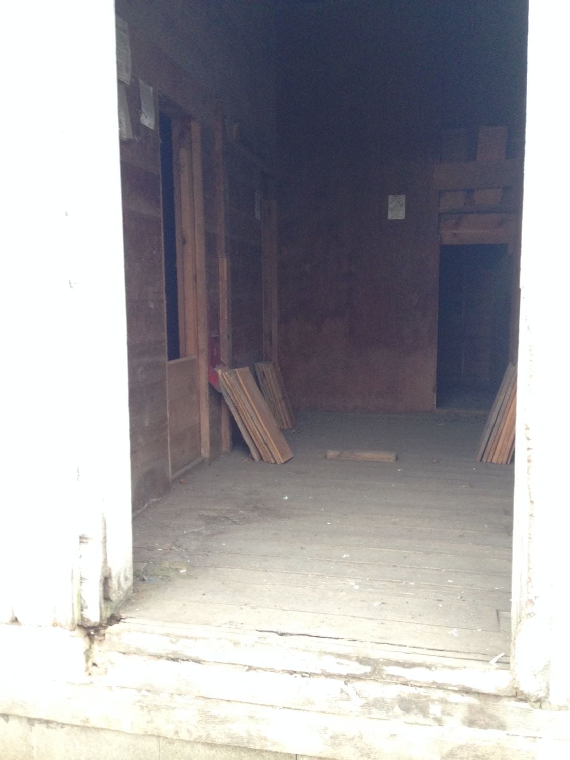 The granary is elevated about 3 feet off the ground and is split into 5 rooms, 4 are equal at about 10'x9'. The 5th is just the isle partitioned off, this wall will be coming down. We do know that there is an opossum living under the granary. We also have rats on the farm and had read that opossums can help with rat control, so he's fat and happily has a place to stay until he gives us reason otherwise.