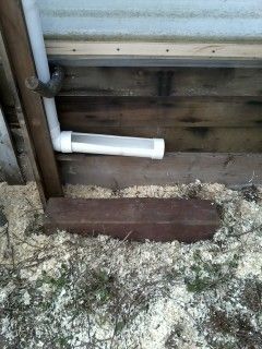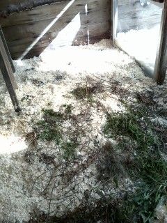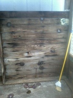It started raining while I was sweeping, so I found more to do to keep my momentum going. There had been a shelf and a couple of other boards here that I'd not been able to get out when I was stripping the inside with my bare hands, but I had the crowbar with me today... Didn't think to take pics until I had everything down. The knotholes used to be covered with rusty lids--the one revealed when I took the shelf down had a hole in it, so I took that lid off and just kept going. One trip to buy more fender washers later, and we have more predator-proof ventilation!