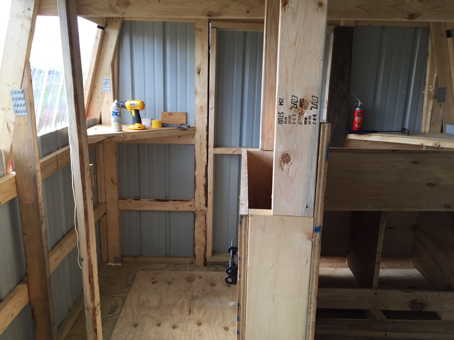 The basic idea of the coop is an 8x12 structure with 8x4 area for humans, and 8x8 for birds.
