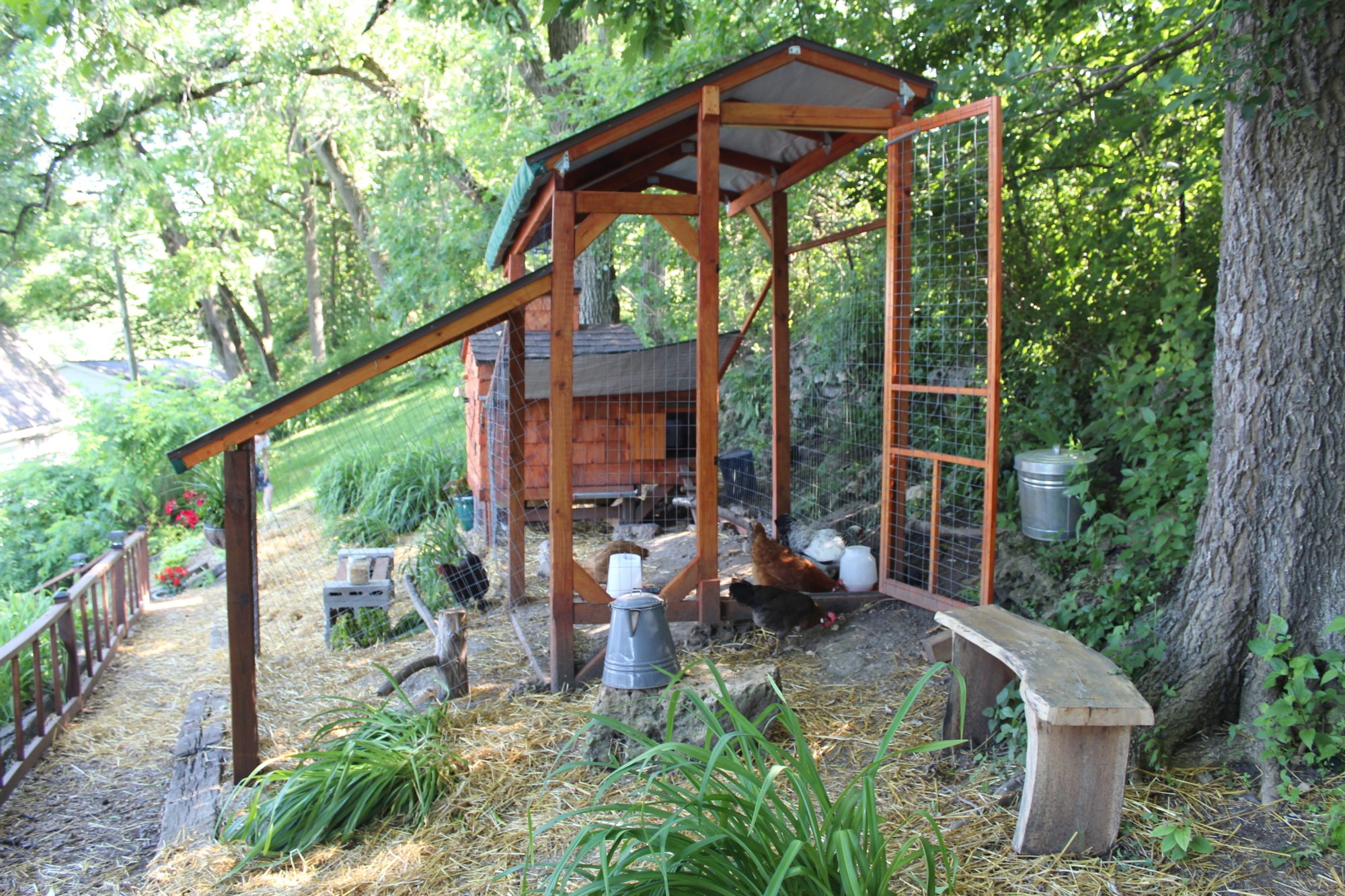 I tried to make the Coop fit in with the natural surroundings. It's bordered in the rear by a limestone wall and surrounded by some huge trees. I think this makes it look smaller and less obtrusive.