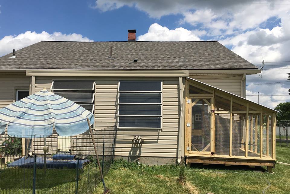 I have been around chickens while spending time on my Aunts farm but never have owned them. I think choosing the location was harder than building it! LOL! Our first thought was farthest away from the house because of peoples opinions of them being stinky. Our property backs up to woods and for obvious reasons, that made us nervous! After choosing 4 locations, we finally decided on having them close to the house where they would be safest. We attached it to the mud room and inserted the side of the coop that has the nesting boxes right through a window we had closed off some time ago so when the snow falls, I won't have to keep a path shoveled! I'll be able to walk out into the mud room in my slippers and collect eggs