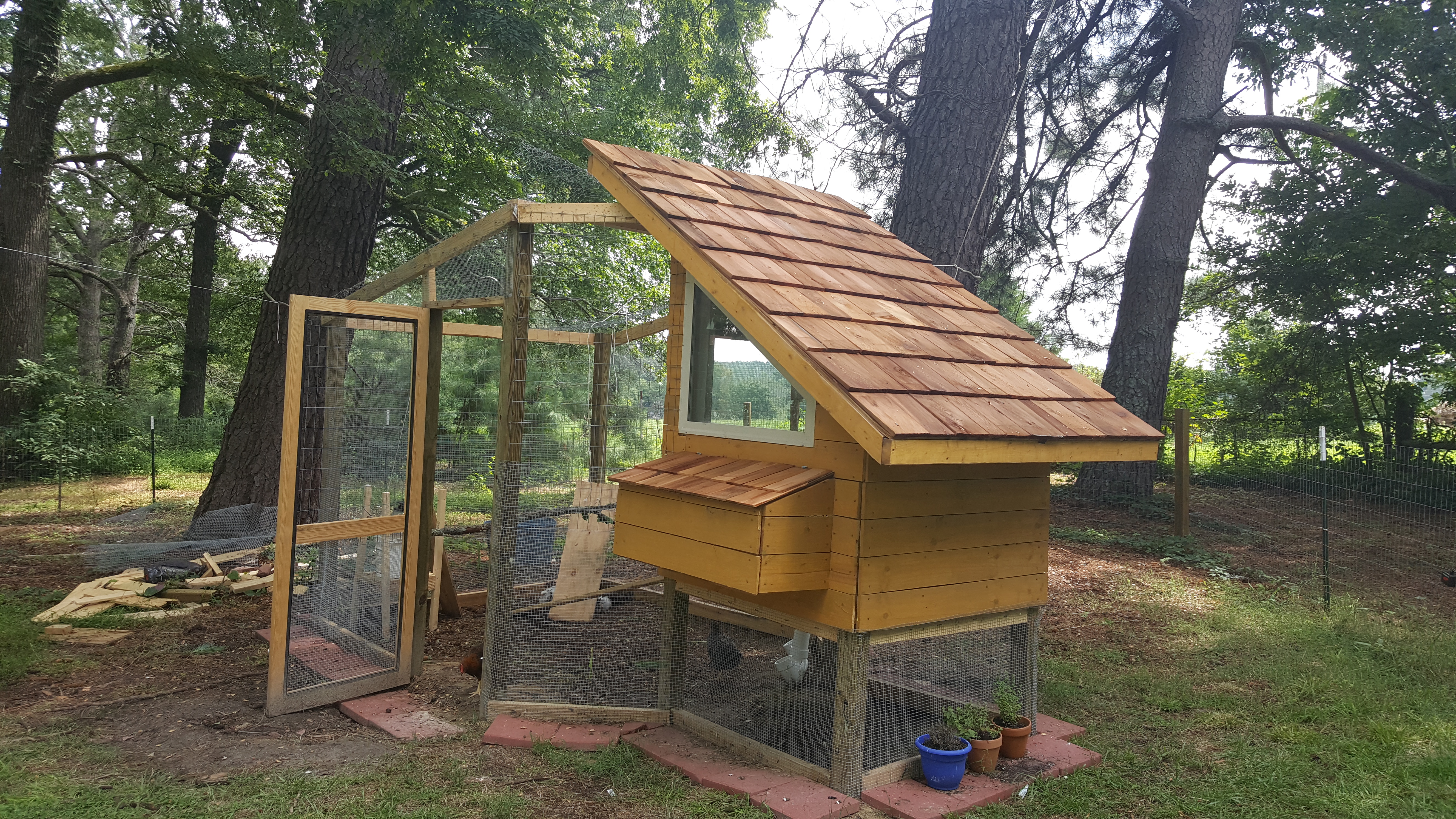 So after lurking on the boards for a year I finally had to get some advice on one of my birds. She is on the mend thanks to the community. I would feel bad consuming content without posting something of my own. So here is our coop built. We started with an odd custom window from a surplus store and just kept building from there.