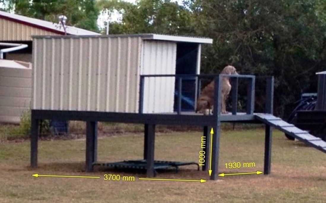 I am attaching a picture of the current dog house. Measurements are included to give idea of size (or the adult weimaraner at 40kg is a good scale model). And yes, as I will freely admit, my dogs are VERY spoiled!