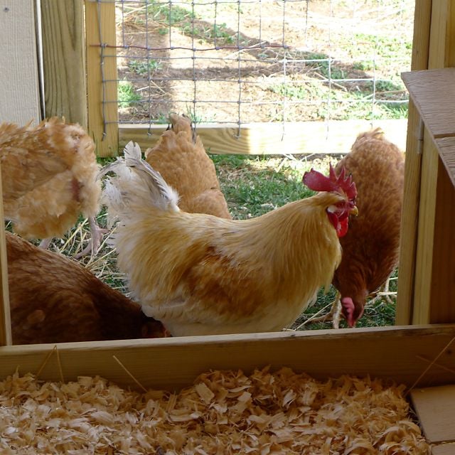 Now to the question: what is the best way to keep the deep litter from falling out the door in the floor?