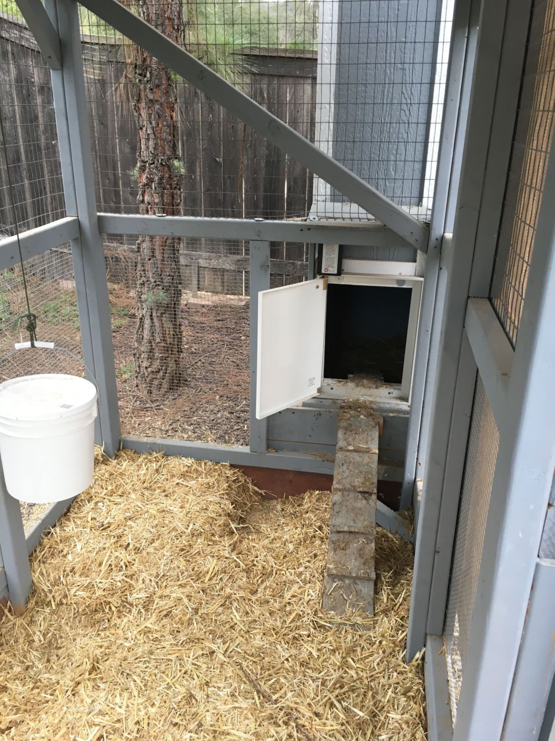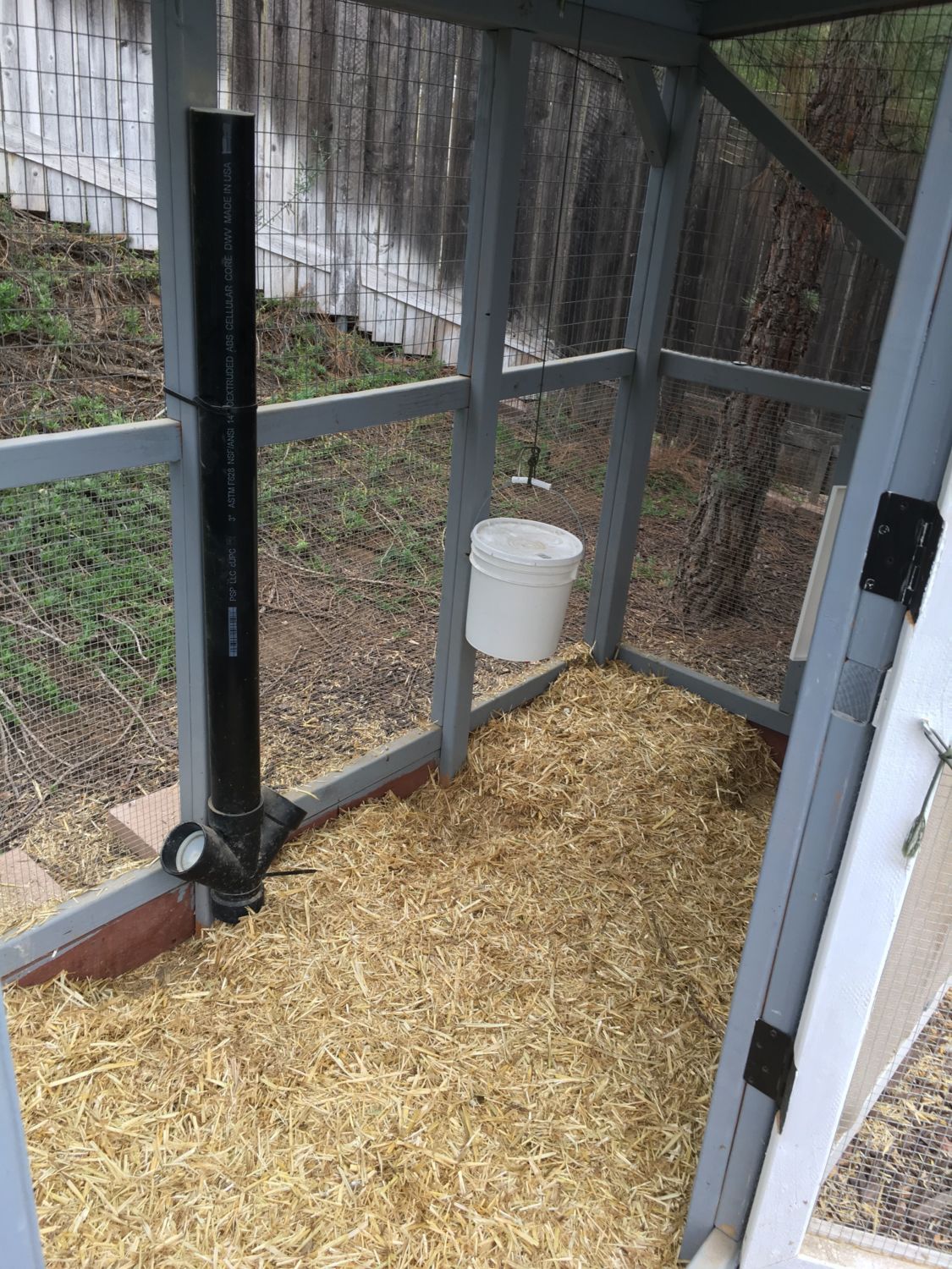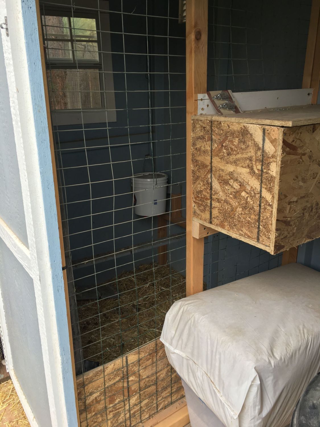 The hardware mesh is installed now, so they go out for the day then return to their temporary enclosure at night. Still have to put the finishing touches inside. The project that never ends....