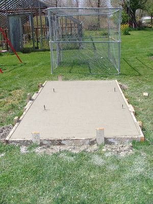 Poured the concrete for our coop floor yesterday! WOOHOO. Some issues though. My hubby decided, basically at the last minute, he wanted a drain in a corner for when we clean it out. He measured wrong and now the coop will be off center on the pad. The drain will be under the wall actually even but, he did a little bit improvising and it should still work ok. The pad is about 5X9 and the dog kennel in the background will be their stationary run.