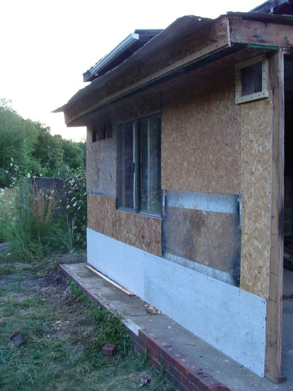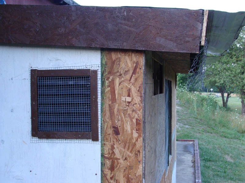 (BELOW) This is the windward side of the coop, the prevailing breeze will enter this vent, which is directed upwards into the coop.