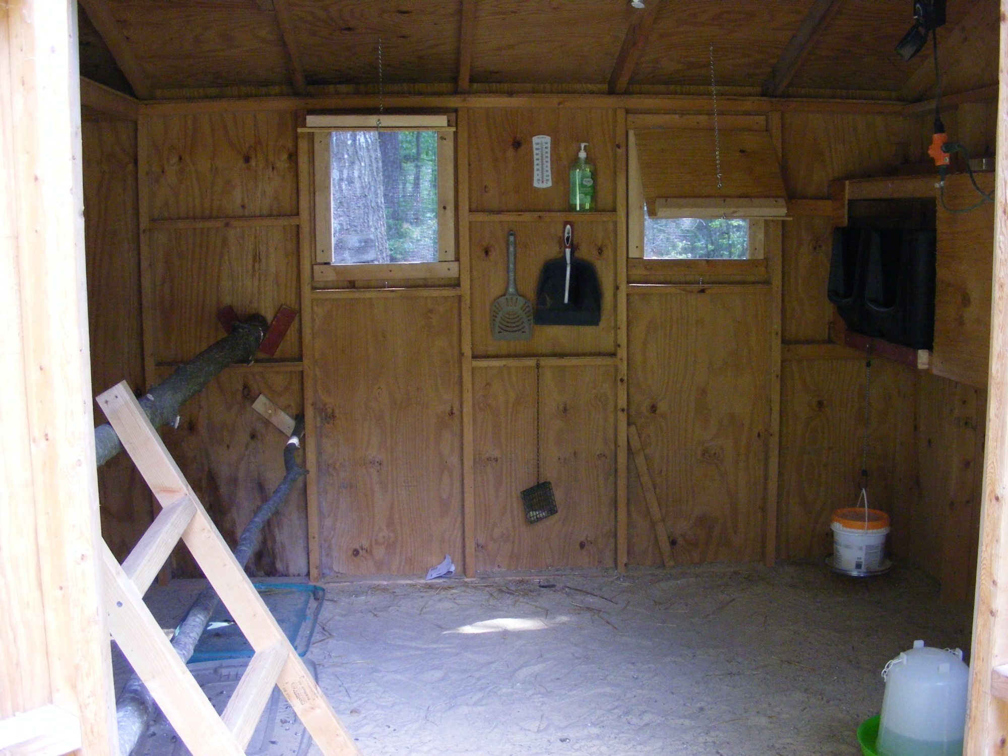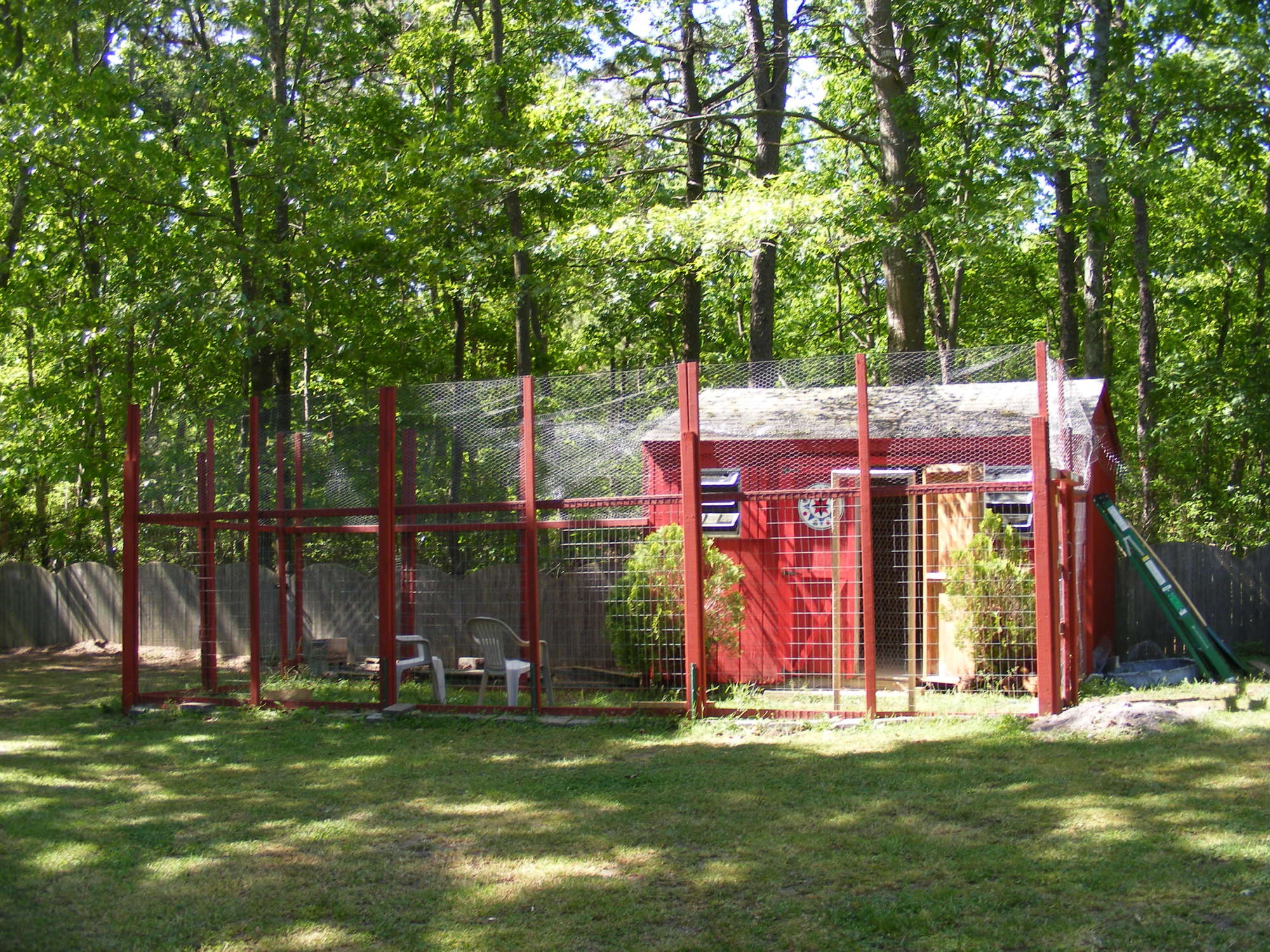 I used my old shed for the coup & with some modifications I think it turned out great.I added to windows to the back to provide some cross ventilation. The coup is 8X10. I added a couple roosts from some trees I cut down and a little ladder from some scrap wood