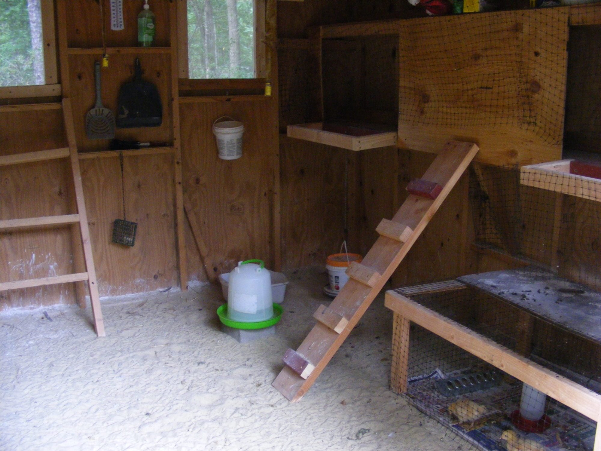 I used 4 plastic tubs for nesting boxes. Just hope they're not to high. We'll see, but if they turn out to be I'll lower them.