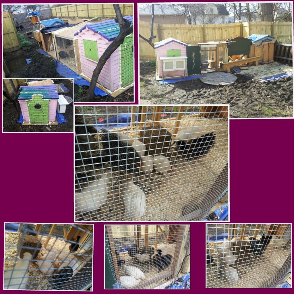 The girls moved in today:) unfortunately we can't free range in the city so my husband built them a 17 foot long chicken run. All 5 (6 week old) are really enjoying their new home. Now quick question for you experienced people how on earth do you get yours into their coops at night? I've been told they'll do it on their own but I had to put them inside. I locked it up (8 locks) and instead of roosting they huddled together in the corner freaking out.