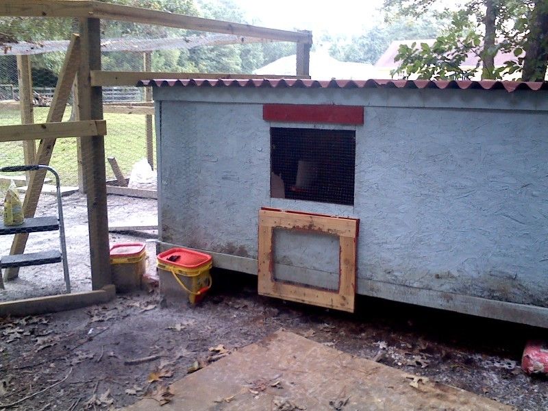Is that a glass window on the side? Very cute. I like the colors. I put french doors on a coop of mine but I can never see in from glare