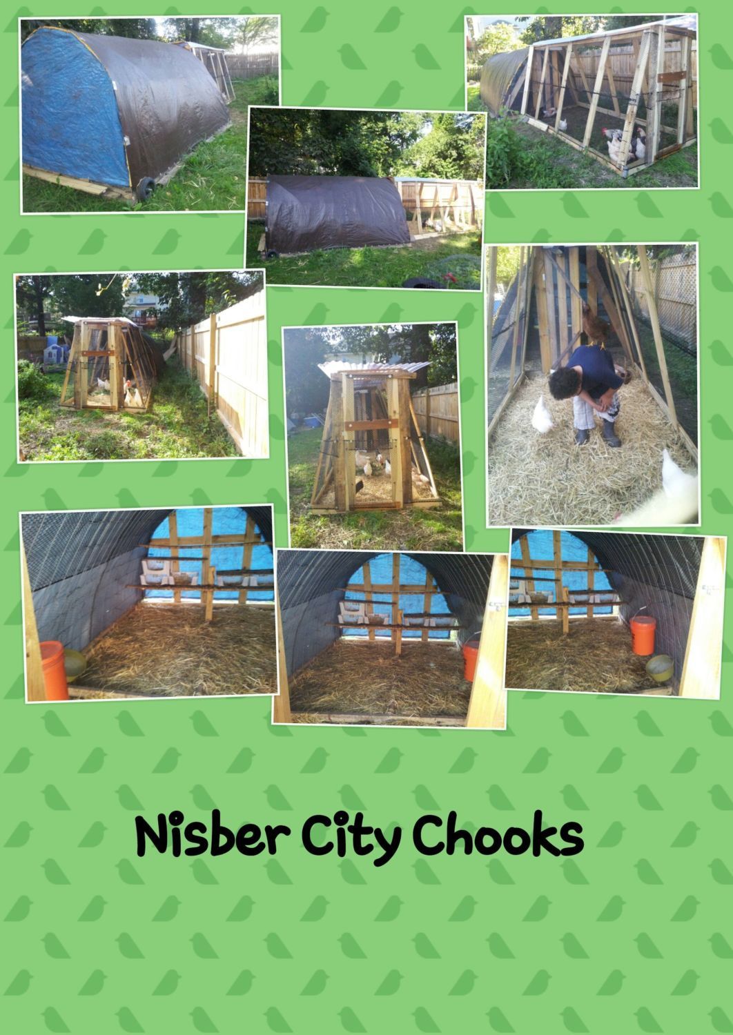 We placed the coop in what was a 3 sided garage/carport/storage area. The people who owned the house before us had the opening facing away from the main property, so we took the wall down and will replace it on the other side, which will again make it 3 sided (so the back of the above structure will be closed). That means the building and the full plywood sides will block all wind and weather from the north and west sides. There is an overhang on the structure that extends 2 feet beyond the edge of the coop. It opens to a 40x70 fenced area.