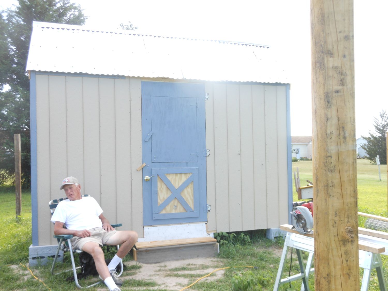 here is our new coop, can not wait to move half of them in, still need to do the roost and nest boxes, finish the yard and do the run, but run will not be done when we move them in as they have the yard to run in it is 30" by 30" the other yard is the same, we will be fixing the old one up on the outside, the inside is ok, also made a dec for outside wall just for fun.