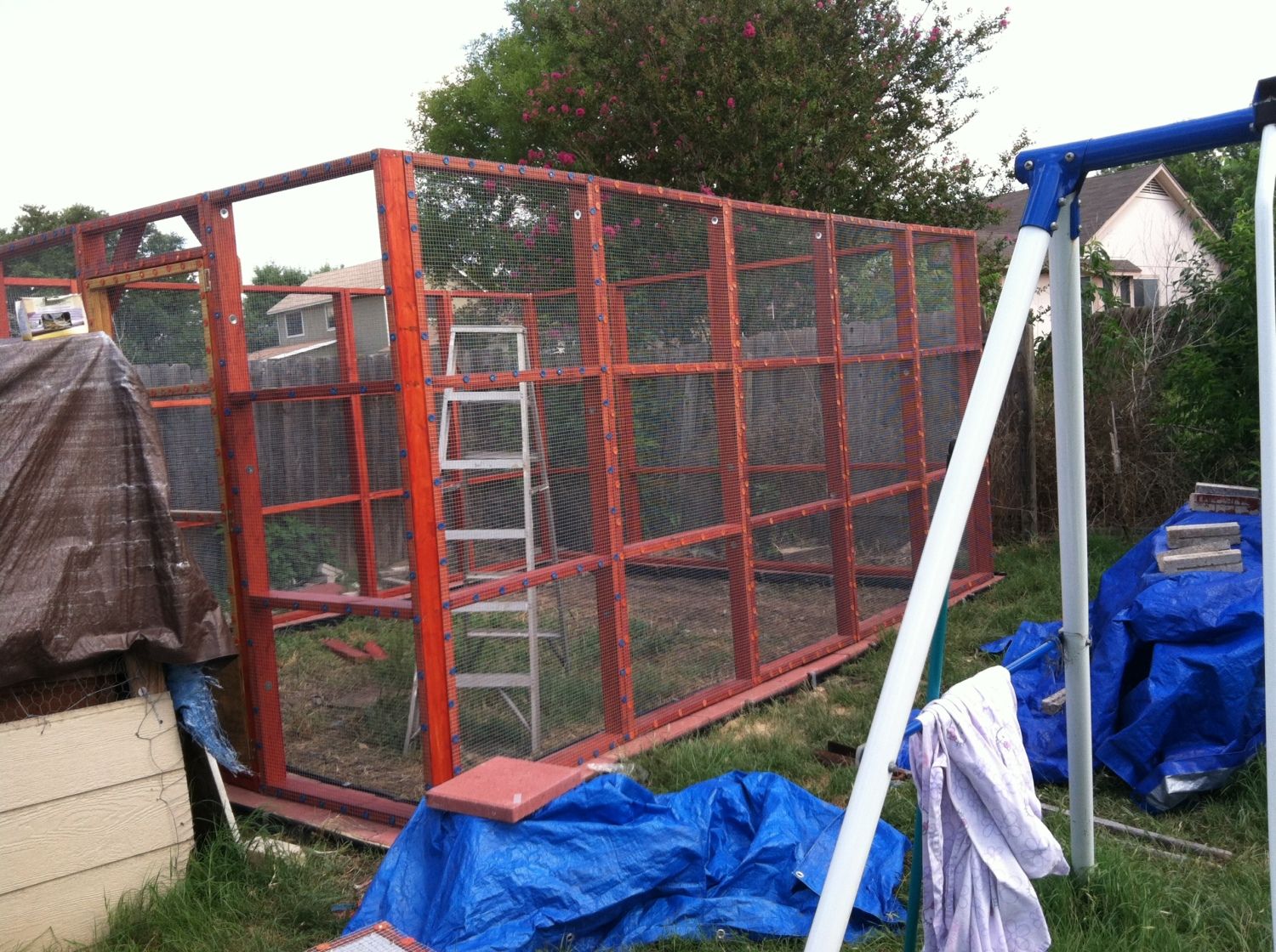 Wow. You are really close to other houses. How many chickens are you going to have? By the size of your run it looks like a lot. I hope you have nice neighbors.  Mine are *** holes. Literally.... I am not kidding. They are horrible.