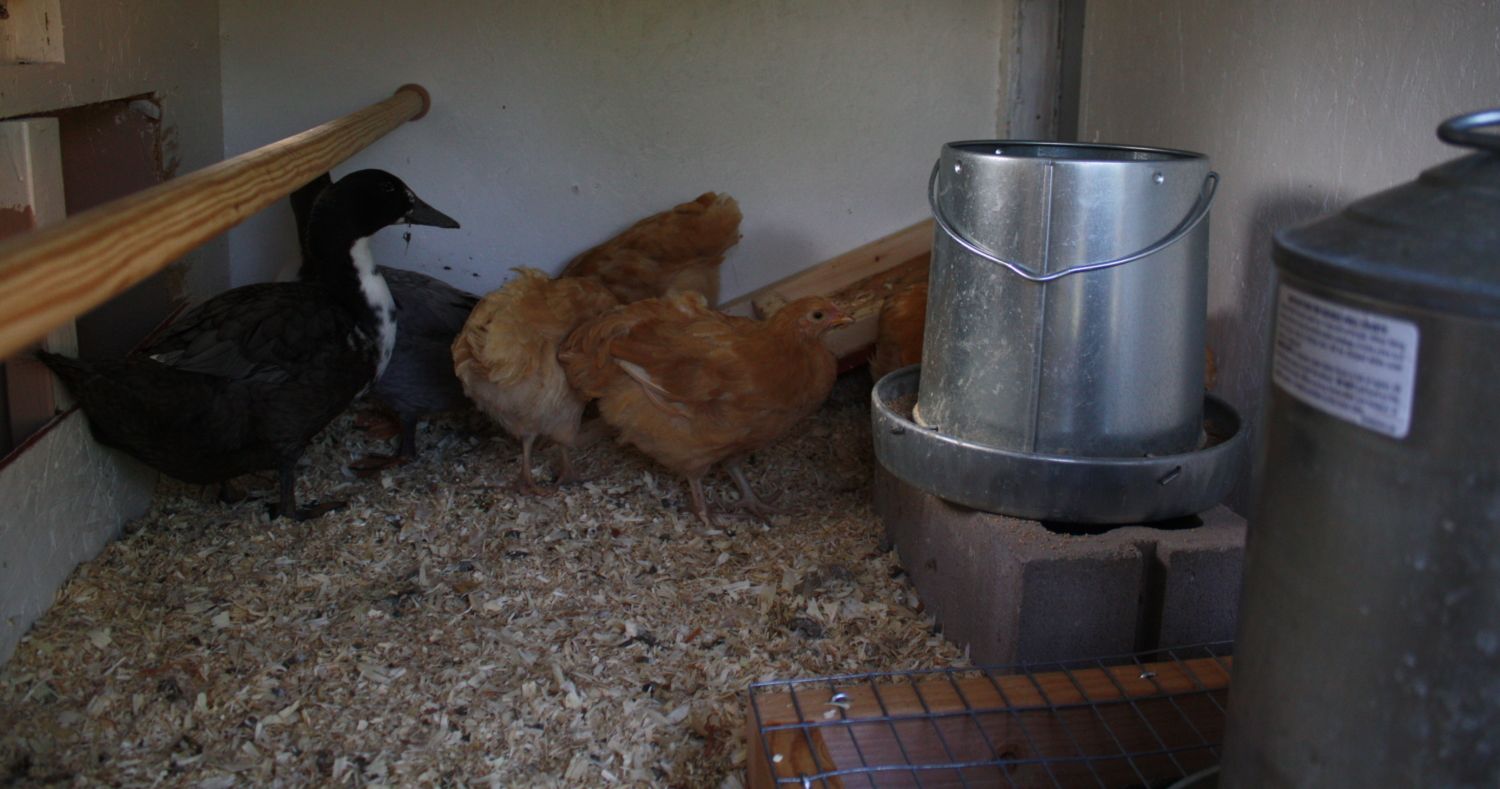 In behind the waterer is the feed hopper and the flock will spend tomorrow in the coop with pleanty of food and water. I'll crack a window if its a warm day...Then the next day they will be let out into the run, but the feed hopper and the waterer will remain in the coop...so when they get hungry and thirsty they will have to go back into the coop to meet those needs. A few days of this and they'll be putting themselves to bed at night.