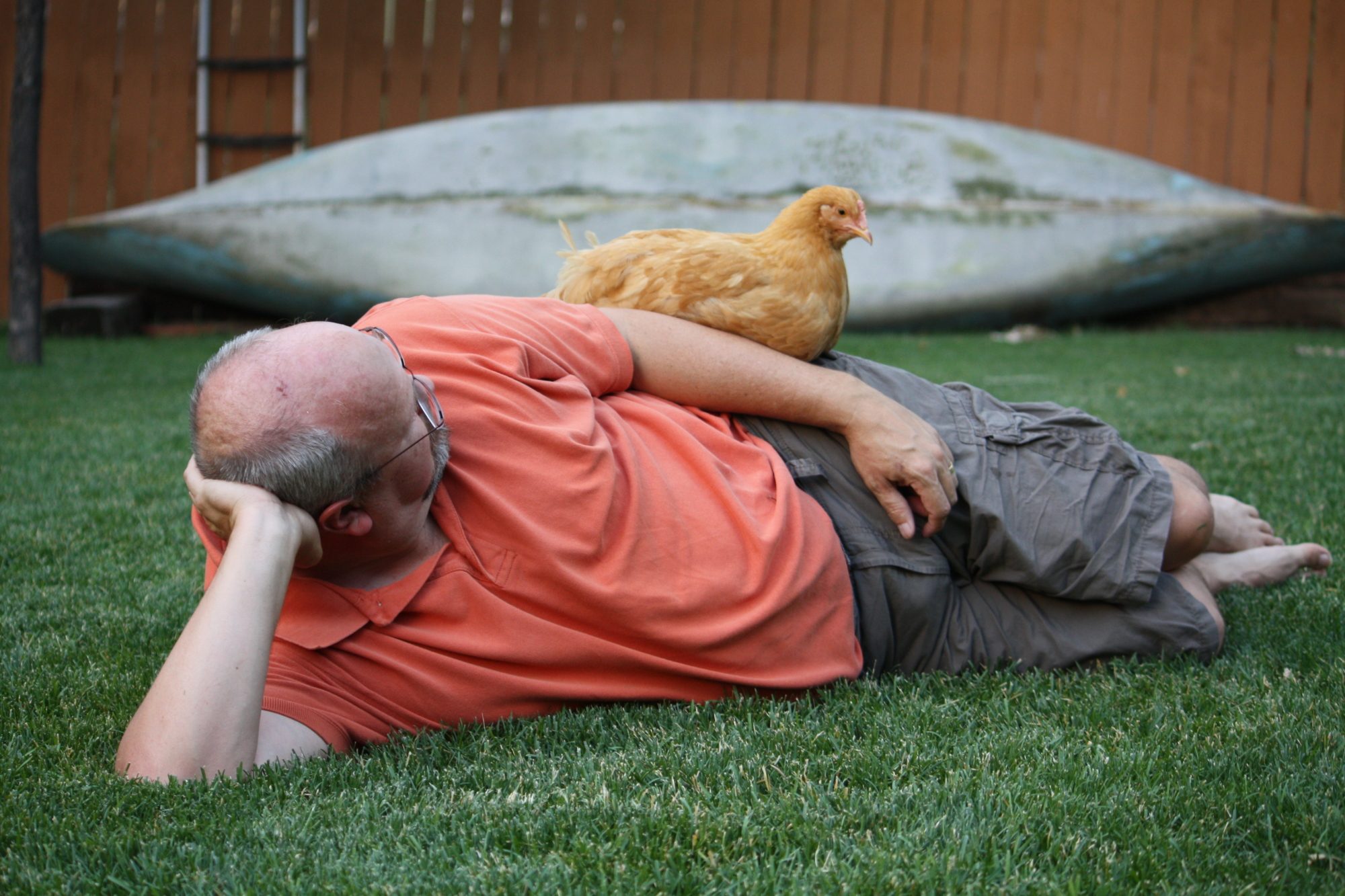 After dinner we went out on the deck and watched the pullets and the ducks wandering around the yard...doing what they do. We've only had these birds since early April, but it didn't take long for the chicken stories to start flowing...it was a great time.