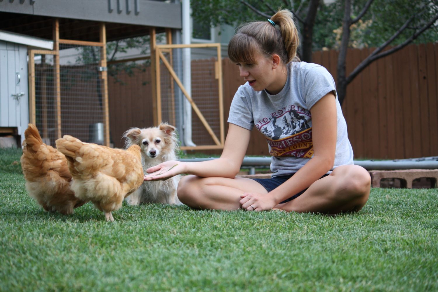 Whenever I'm in the yard, ChaCha is usually close by...if I ever sit down for longer than a moment; she's usually in my lap, or on my back checking my pockets for food.
