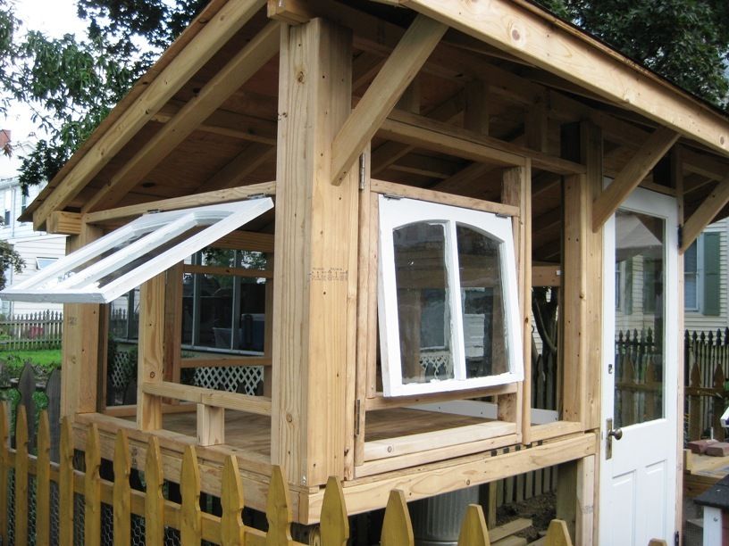 Here are some in the building phase, that didn't come out upside down. We used arms for screen doors for the windows so I can prop them open at any angle.