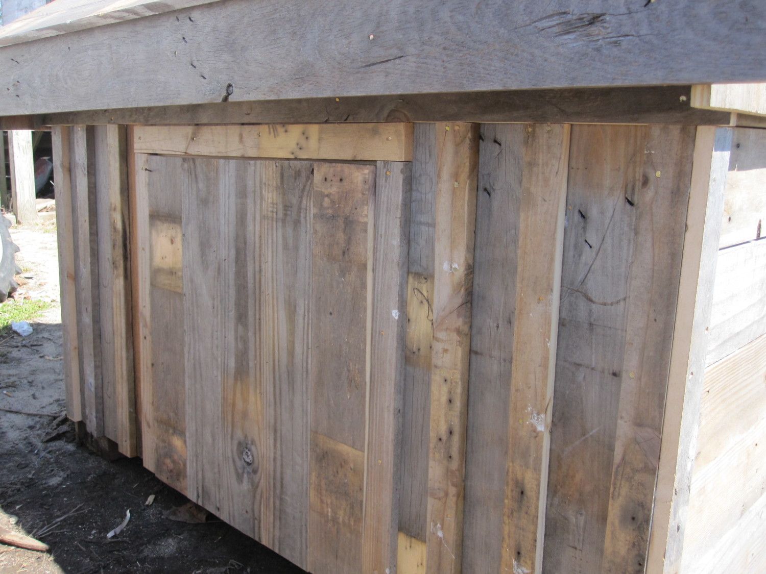 We did some additional covering of cracks between boards to make sure the coop isn't drafty, and to add a few more pounds...boy do I feel bad for the poor sap who has to move THIS thing. Oh, wait!