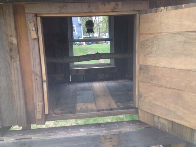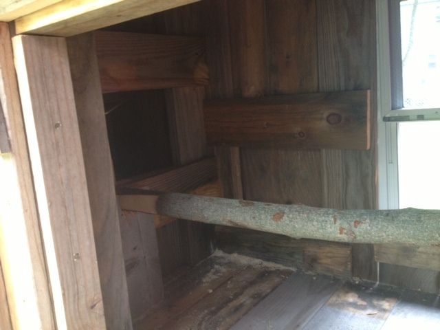 We added a similar "rustic" style roost inside the coop, but made that one removable for easy cleaning (again, didn't grab a picture...next time!)