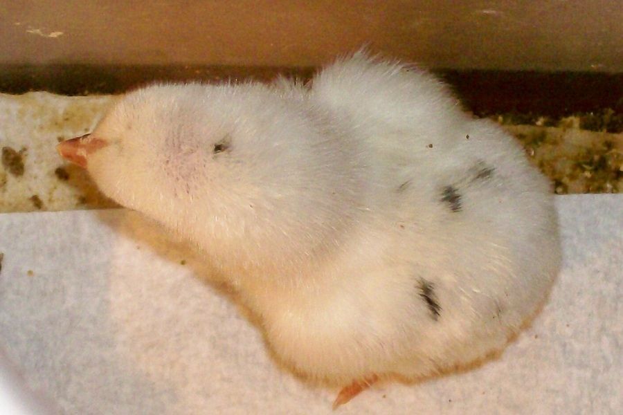 The flash did not function; this chick's base is actually silvery white, but it has the most black showing.