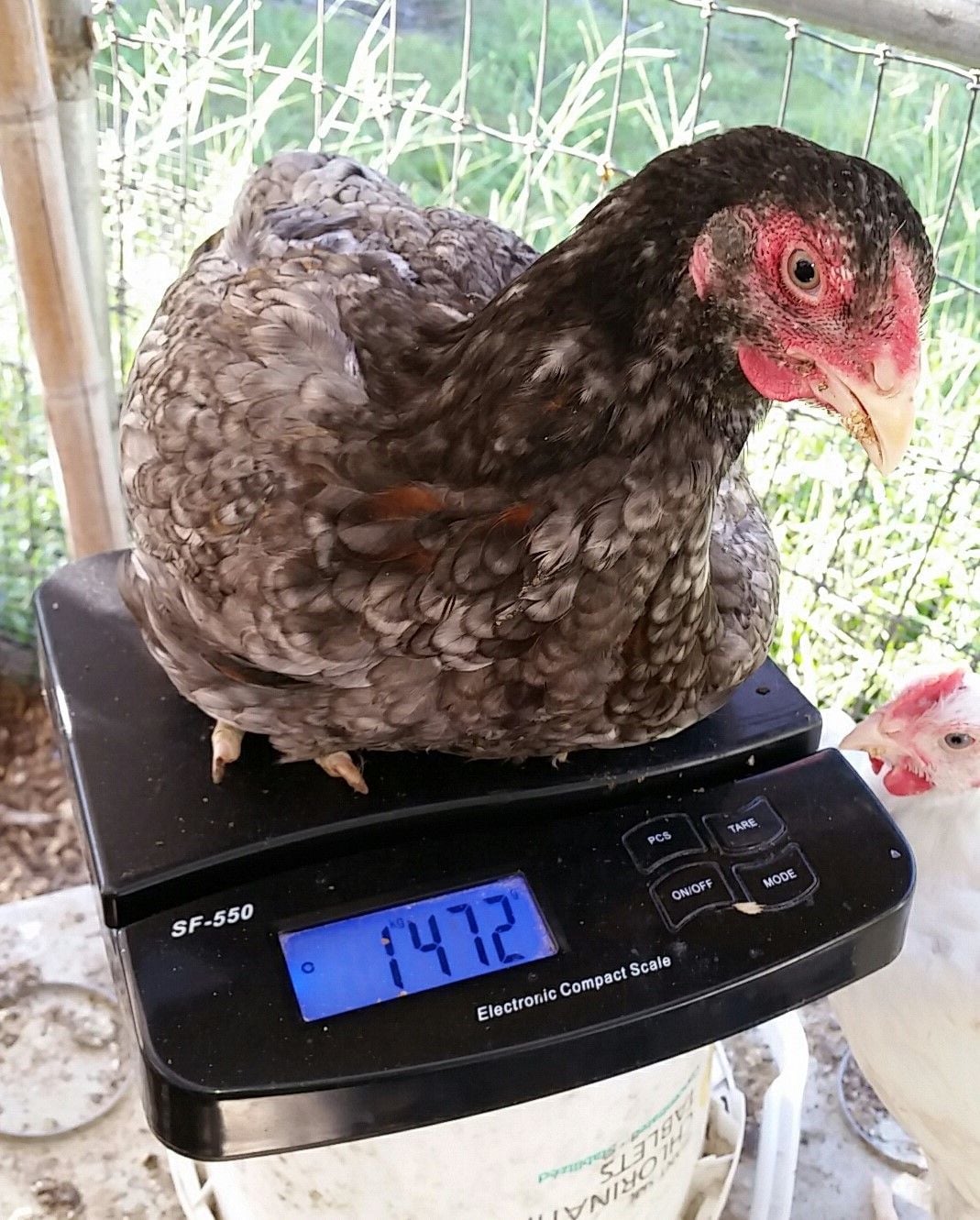 F3 - 7/8 Dark Cornish 1/8CX project bird hatched 10/1/2016 79 days old today 6 lbs 6 oz.