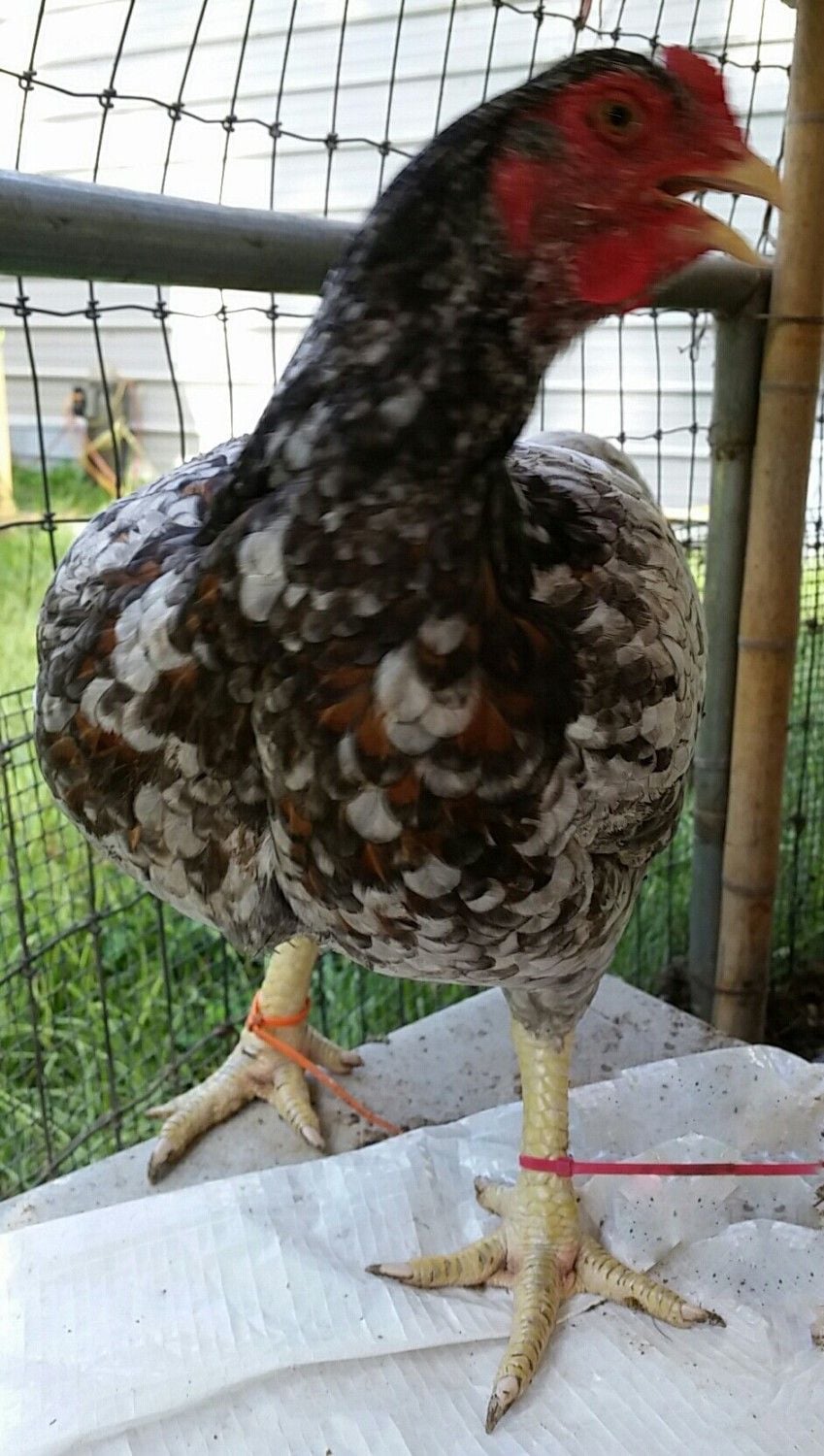 There are some telescopic combs. I believe Guinevere, the mother is the better bird, so I am breeding back to her. BamBam is most likely related to Guinevere, they are good for F1/F2. We get the big comb about 15% in F1. So I have selected a nice son to carry on with. BamBam is good for crossbred stock. He has some big SOP faults that Guinevere does not have.