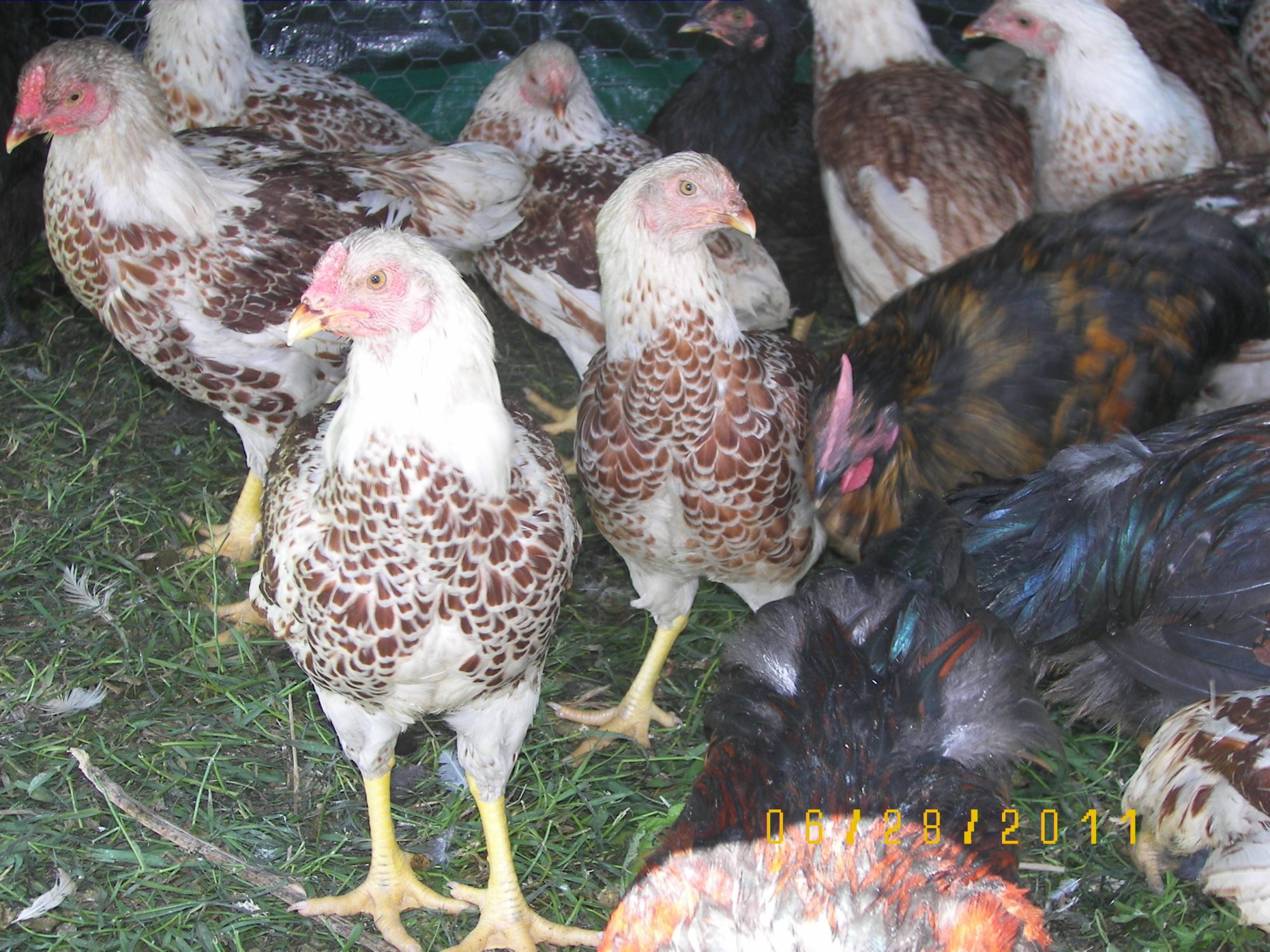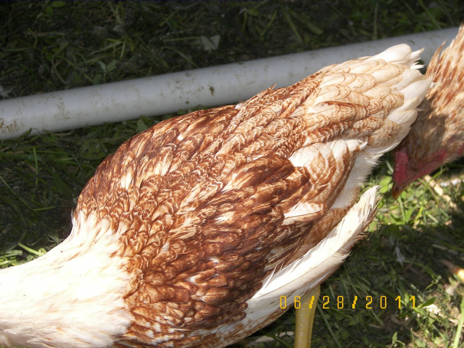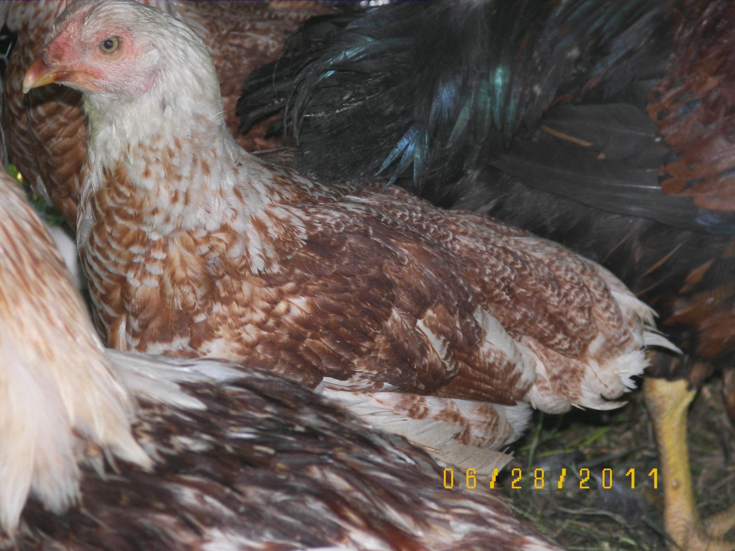 If a hatchery can get that color of some of those in the second picture, surely someone aiming for it can get it on their Cornish with better type. I bought your current pullet's grandmothers from Schelcht's as straight run, not caring about color at all but intending to cross them with CX to get one line for an eventual project, Never accomplished that cross. lol For some reason the grandmothers with that multi-laced color in the last picture were also the weakest bodied, but kept the pullets only and eventually bred them to a decent DC. I still had the two of the heaviest built and darker colored pullets that came off them until they went into my freezer recently. They were very steady layers of 4 small eggs, and just before I quit hatching this spring, went ahead and hatched eggs from them bred to both and my WC and one of my DCs. The chicks aren't bad, though lighter framed than I want. Nothing wlr, one cockerel is white with heavy red bleed, the others either clean white, black, or dark without the right pattern and impossible to tell apart from some of the same colored chicks that hatched without muffs [which are 3/4 Dark Cornish and 1/4 Black Ameraucana]. That's OK as none of the smooth faced chicks in that pen are going to be kept anyway.