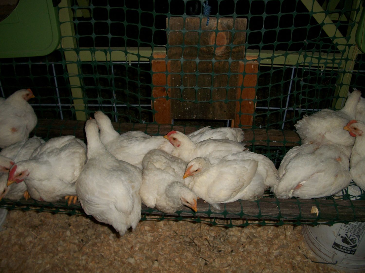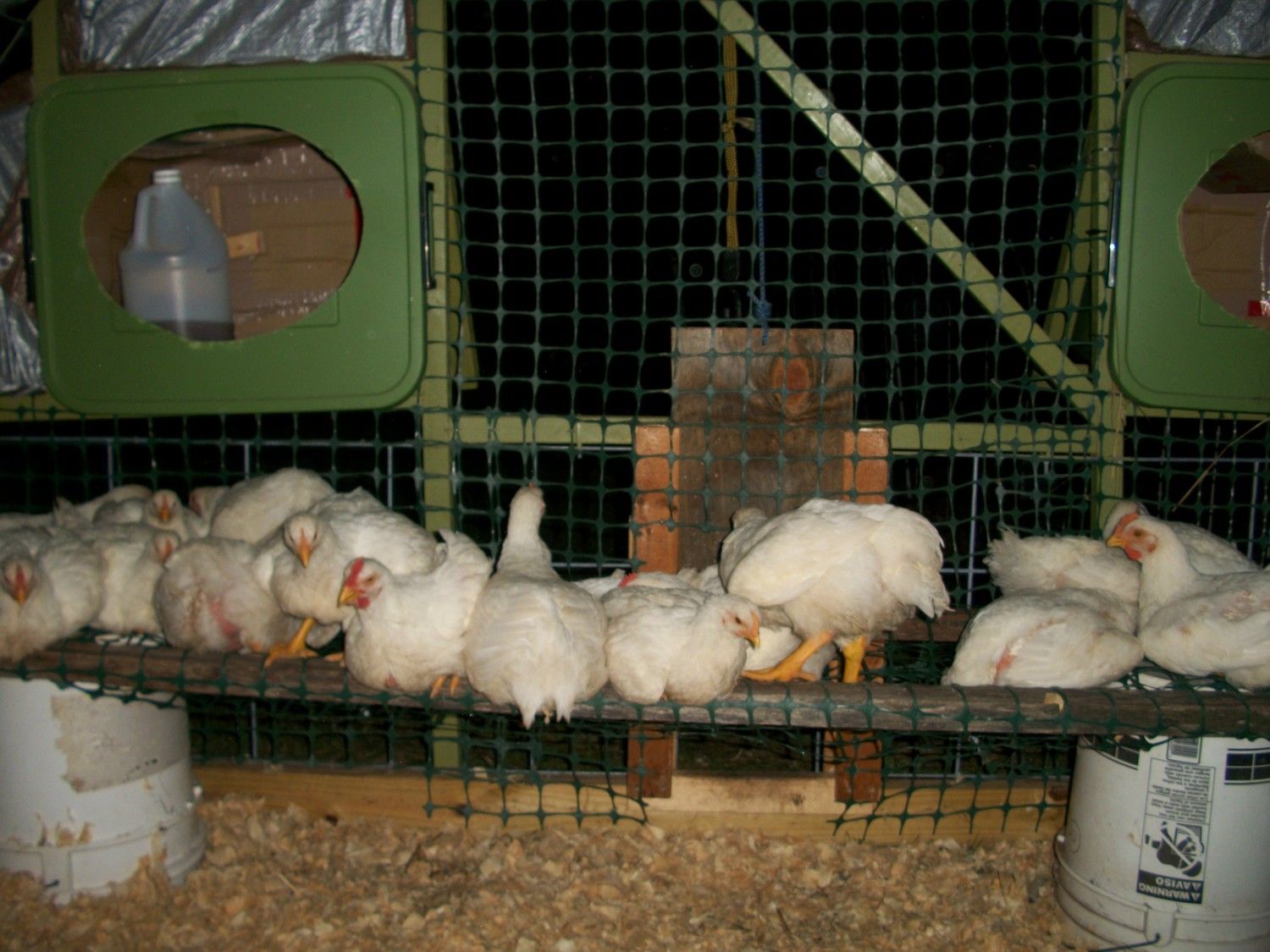 You can also arrange them wide, comfortable roosting areas so they can get up and off the floor. This is as simple as 2x2s, plastic netting and some overturned buckets, or even a 2x6 board stretched between cinder blocks. Meaties take a little more managing than regular chicks but they do not have to stink nor be dirty. I had 54 free ranging out of a hoop coop in 98* weather and 65% humidity and you couldn't see a fly or smell much at all in the coop. I didn't have to bankrupt myself on bedding either.