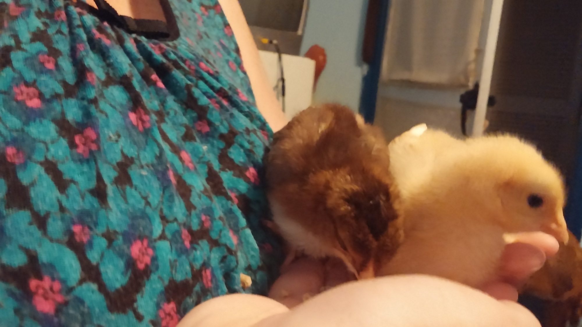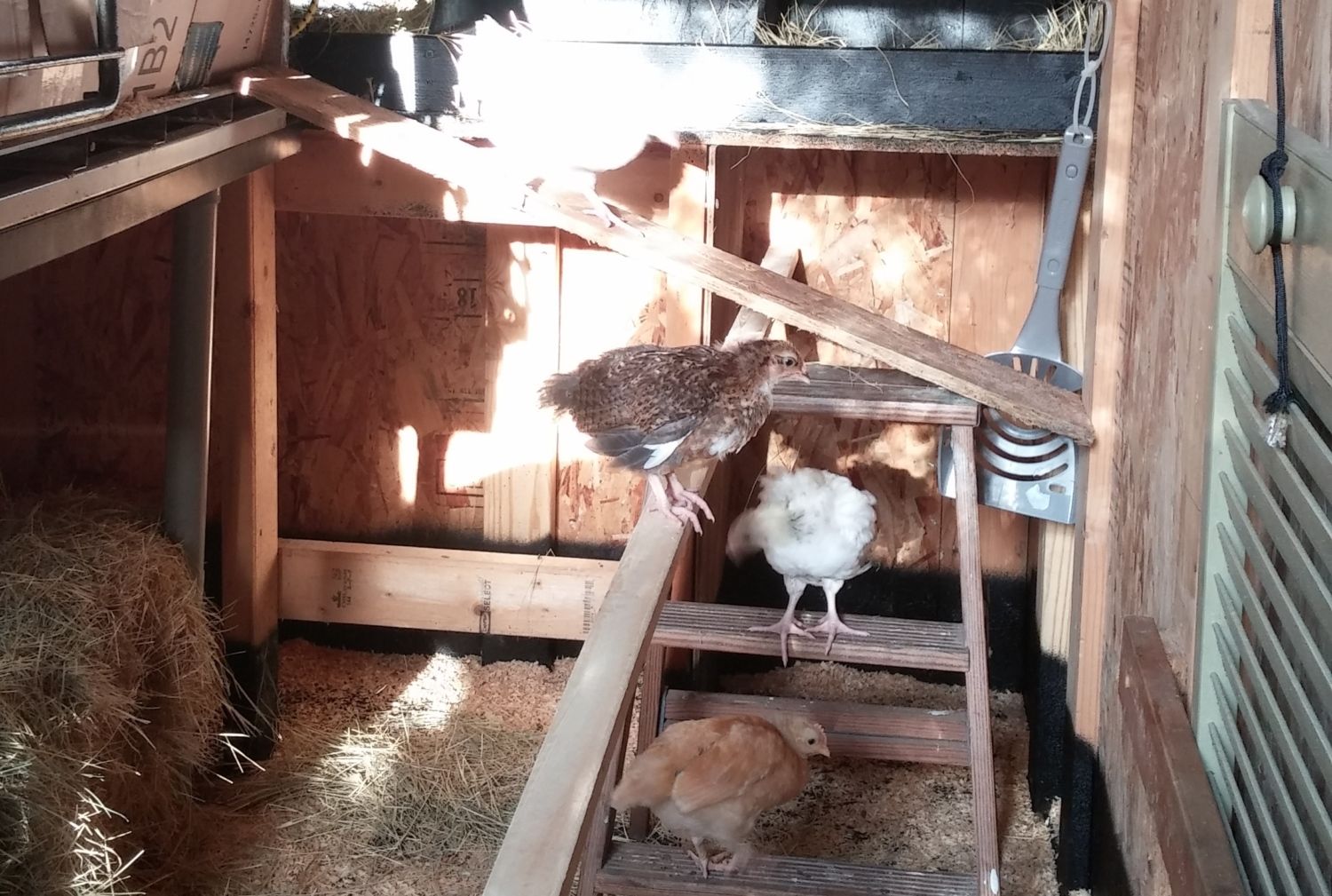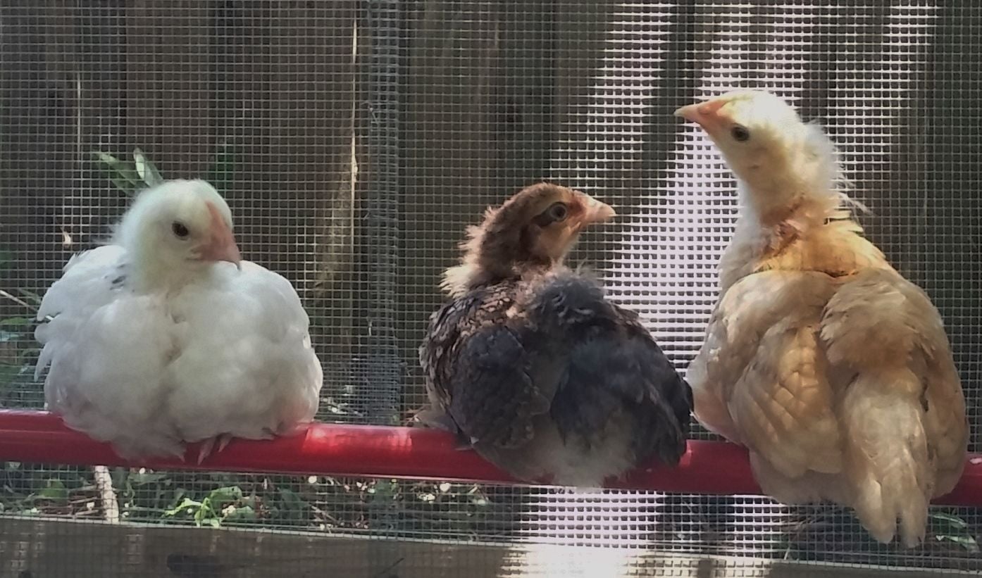 That weekend , 6 weeks and 2 days ago, we picked up 6 cream legbar eggs from him. All 6 hatched, way to go Jeanie you sat on them like a champ! Since they auto sex, we pick out 2 little baby hens to keep and the rest went to a friend that lives around the corner and down the road a look see. Our 2 bitty hens are Boo (she's brave) and Poppin. Poppin's got a lot to say. Ok actually she complains...a lot. Like it's a hobby.