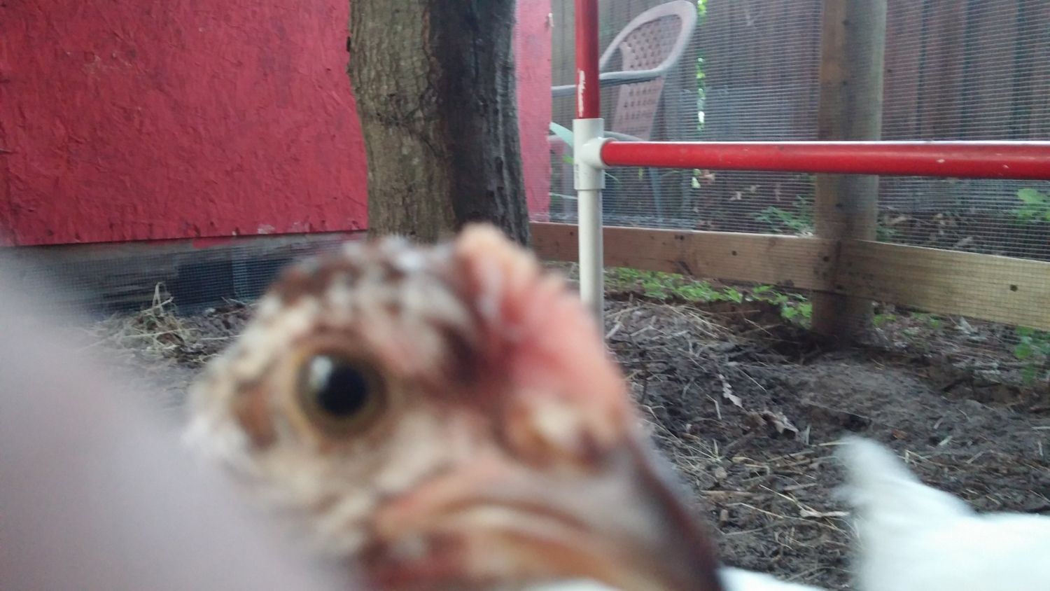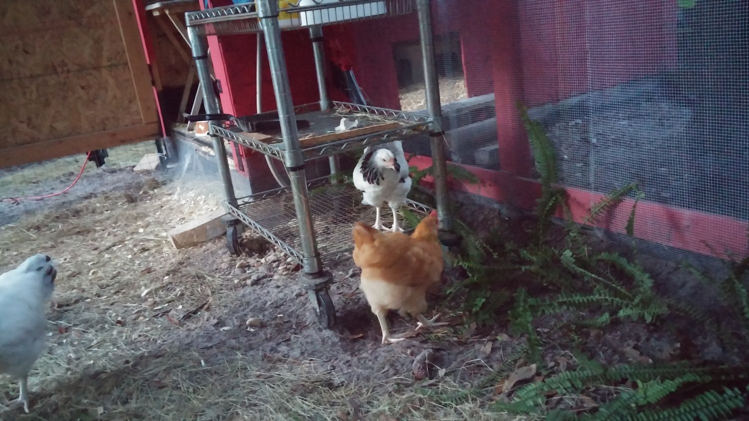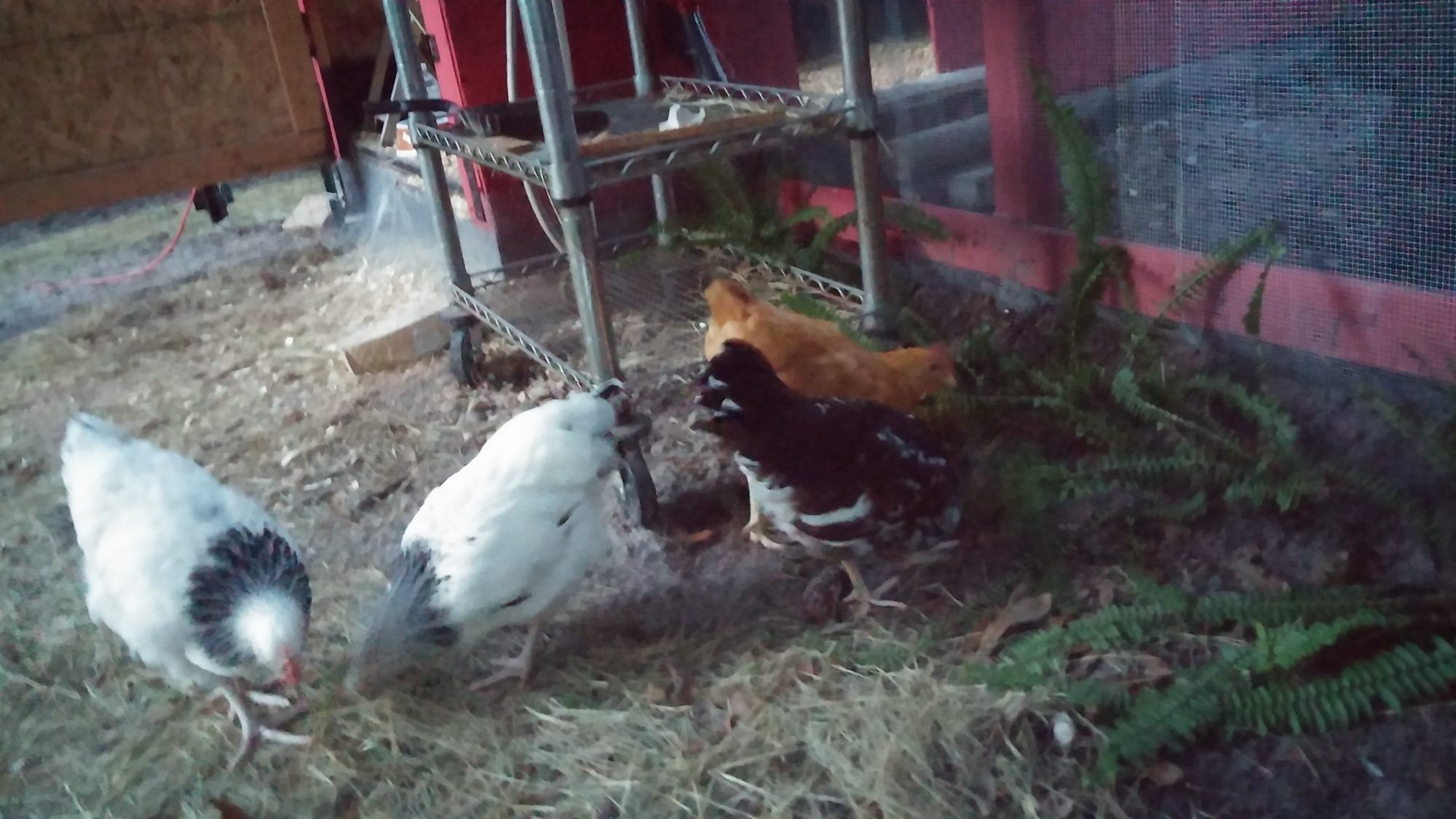 So, one near hernia and hen house painted red later.. .( that's why we call it the mini barn ) we got our first bunch. that being a buff orpington and a speckled sussex we got from the local feed store. The weeks not even half over and wouldn't you know it, wife got hit by the chicken fever. She wanted 2 more chicks on account of 2 is so lonely...uh...ok. So that following weekend 2 light sussex babes were got from a breeder that become our trusted friend. After a few days we named them Marilyn Norma, Jeannie and Tippy and we got to tending to them like what they were going to be; spoiled little chickens that would give us eggs. As they grew, each day was a new story to each other of how they did this and how that did that and isn't that cute? Pictures started being taken on a daily and we got to showing them to everybody. Even the waitress at our favorite restaurant. She indulged us.