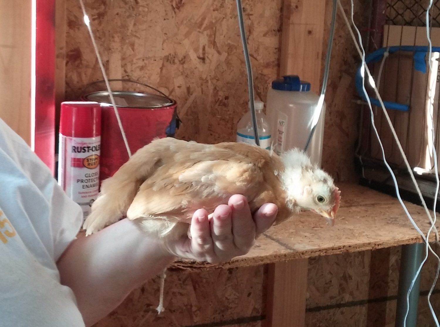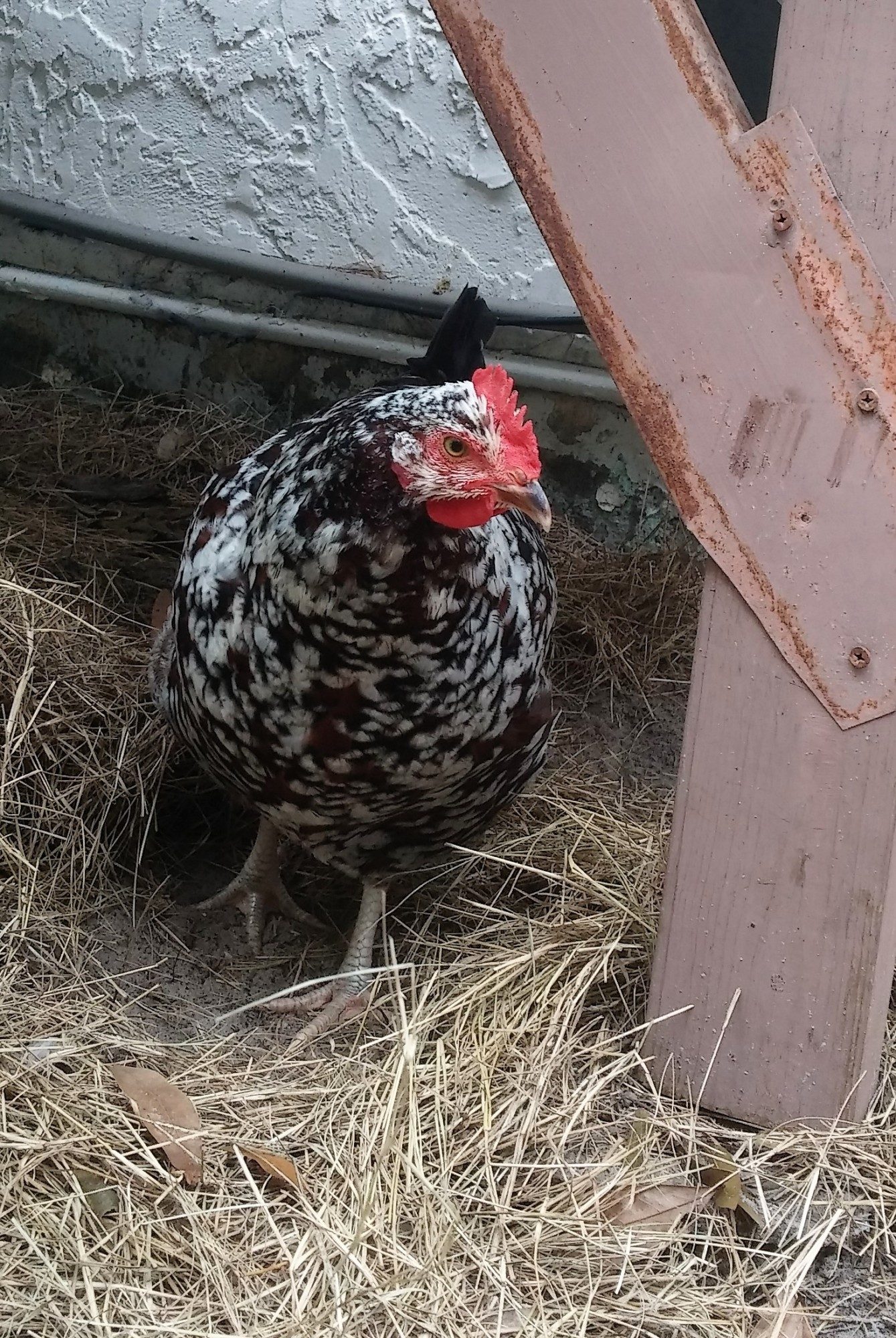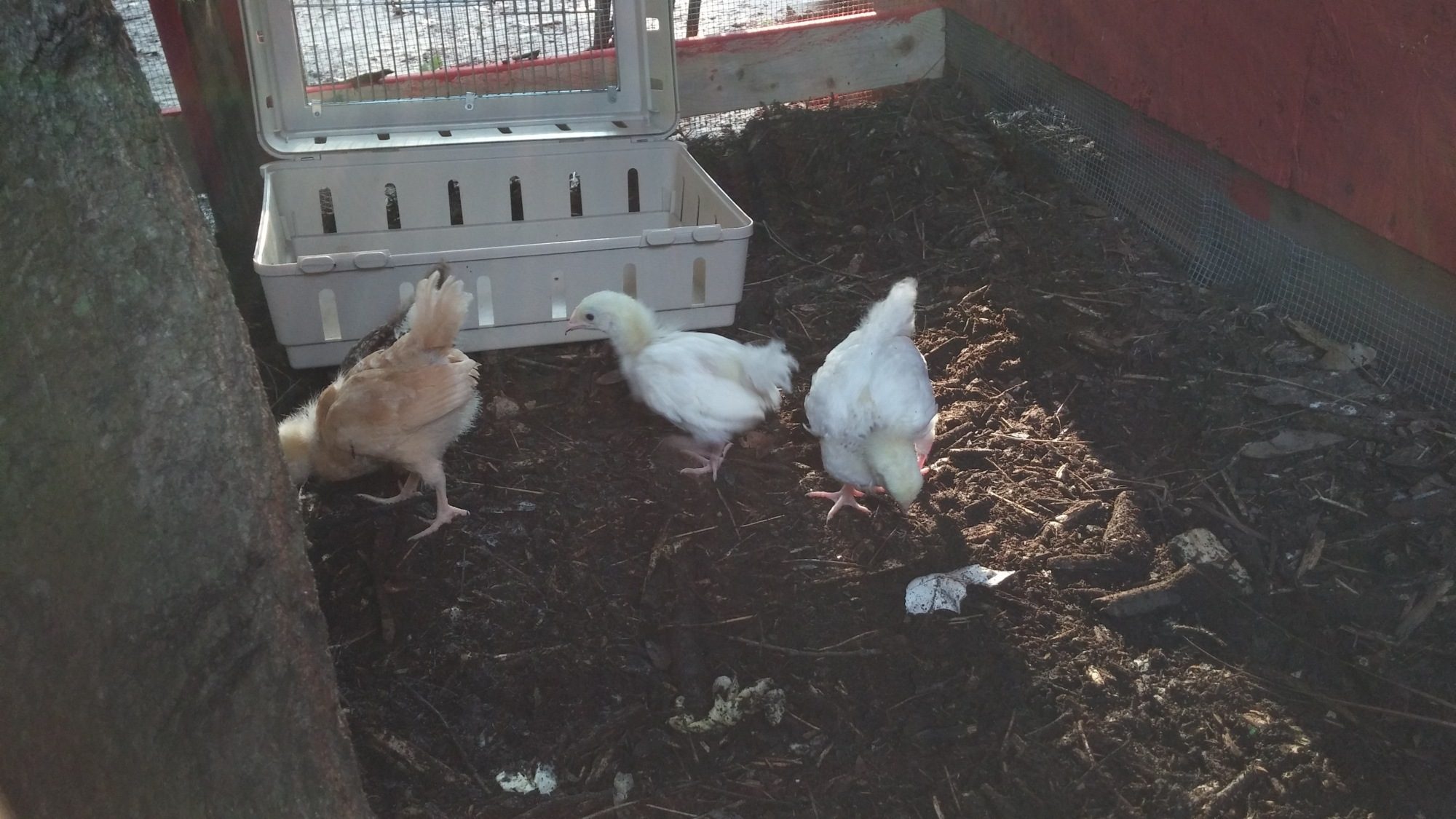 So, one near hernia and hen house painted red later.. .( that's why we call it the mini barn ) we got our first bunch. that being a buff orpington and a speckled sussex we got from the local feed store. The weeks not even half over and wouldn't you know it, wife got hit by the chicken fever. She wanted 2 more chicks on account of 2 is so lonely...uh...ok. So that following weekend 2 light sussex babes were got from a breeder that become our trusted friend. After a few days we named them Marilyn Norma, Jeannie and Tippy and we got to tending to them like what they were going to be; spoiled little chickens that would give us eggs. As they grew, each day was a new story to each other of how they did this and how that did that and isn't that cute? Pictures started being taken on a daily and we got to showing them to everybody. Even the waitress at our favorite restaurant. She indulged us.