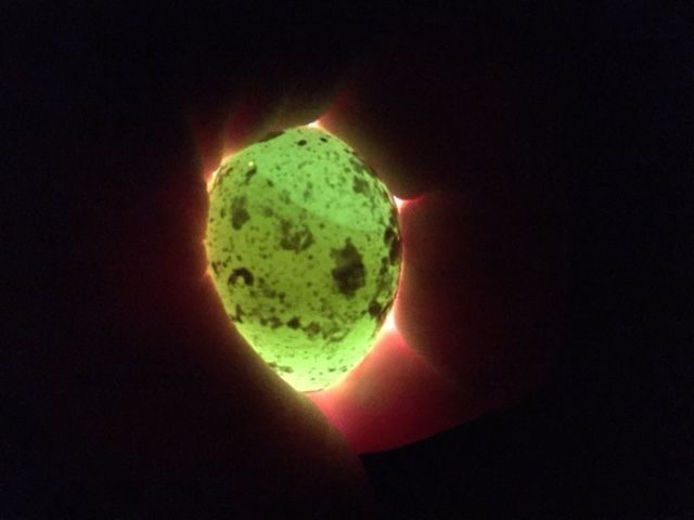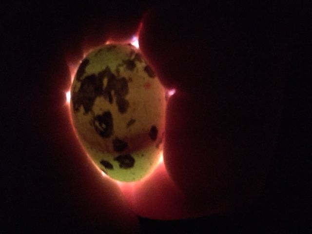 This is my 2nd attempt at hatching anything. My first attempt was with 5 Corturnix eggs and they did not develop. In this batch I have 17 eggs. They had been stored from anywhere to 1 day to 2 weeks before I placed them in the incubator. I had stored them at room temp because I thought that was okay. So, I am not expected much from this hatch but maybe a few will make it. I candled today at day 11. I have 3 pics of the various stages of my eggs. Some are green with what looks like a gray mass and an air cell. A few have what may be a blood ring??? And then there are a few that are pretty much dark with some glowing at the smaller end. These aren't great quality but if you have the experience please tell me what you think if you don't mind. My next batch is being stored in my garage. Thanks!