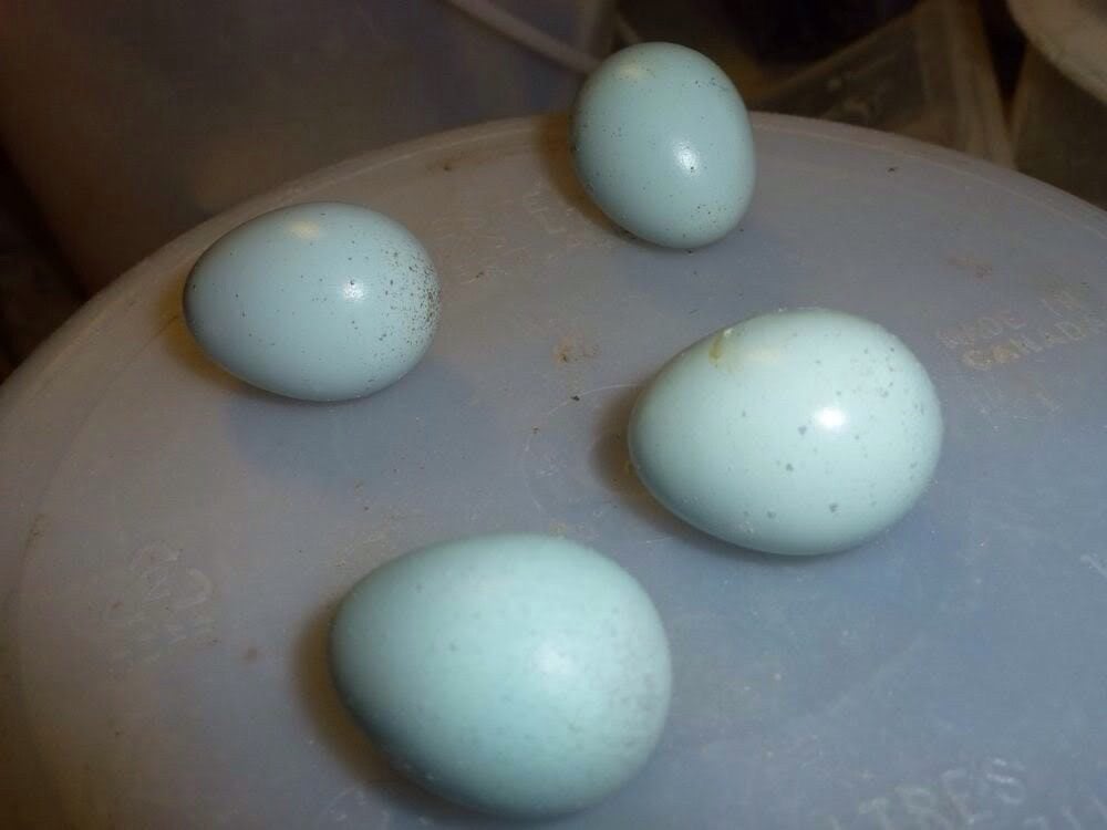 That is unique to the blue eggs I've seen. Most were closer in color to the picture FatDaddy posted and without large spots. I wonder if it is the same gene or a different one altogether, but it's great either way. Thank you for posting that. Hopefully you get some to hatch, make sure to keep us updated!