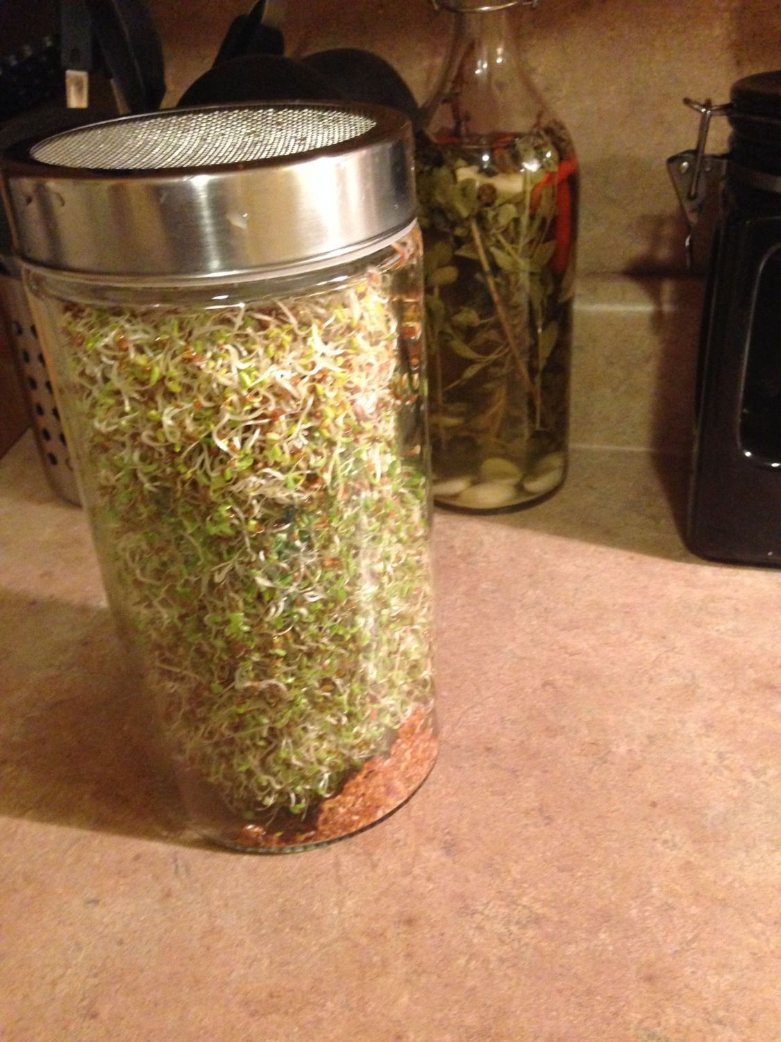 Pretty cool, I'll have to give them some healthy treats then! Already going to give them alfalfa sprouts. Been saving pasta sauce jars forever, finally have a use for them.![]()