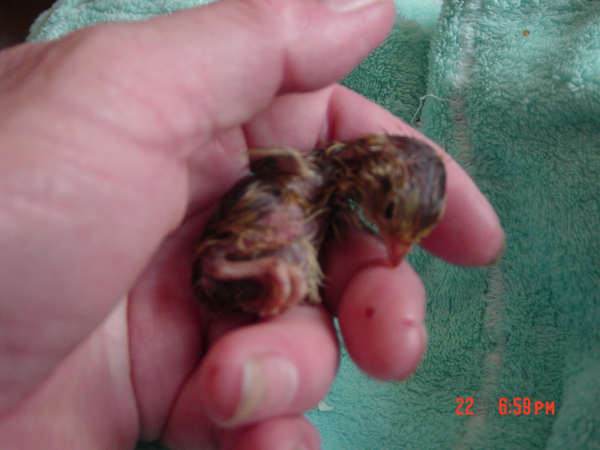 My duck Miss Wonky was my extra heat source for my baby quail in the winter when she was a duckling, they spent more time cuddling with her than near the lamp. She had bad legs and couldn't stand so she lived with the quail so she wouldn't get knocked around. They provided her companionship and she was a warm ball of fluff for them to snuggle with.