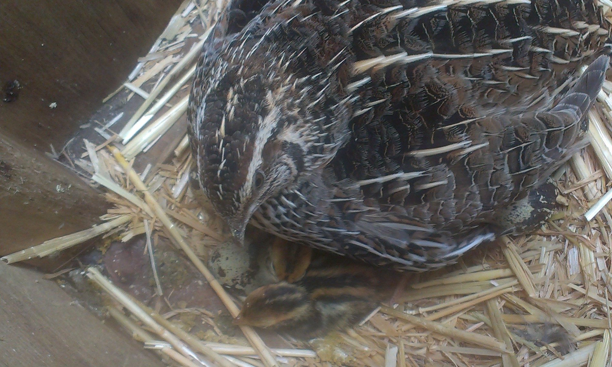 It seems to be a fairly rare occurence - a Coturnix Quail successfully hatching her own young - so I thought I'd show you my clever girl who has done just that.