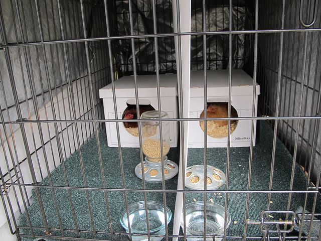 I was silly and sold our incubator last year. Luckily I have two broody bantam cochins right now. I put them in a large dog crate, in nest boxes I made out of office max file boxes. I also put a divider between so they stay on their own side. Right now I have them on my back deck with a tarp over the top, but worry about predators. Do you think they would mind getting moved into our basement, or would the drastic change be too much for them? I don't want to shock them out of being broody, but I don't know - maybe they won't even care? I keep lights on all day for my parrot already, so they would not be in the dark. My eggs arrive in a few days from Lucky Pickens Farm, so I want to make sure my little incubators are all situated by then.