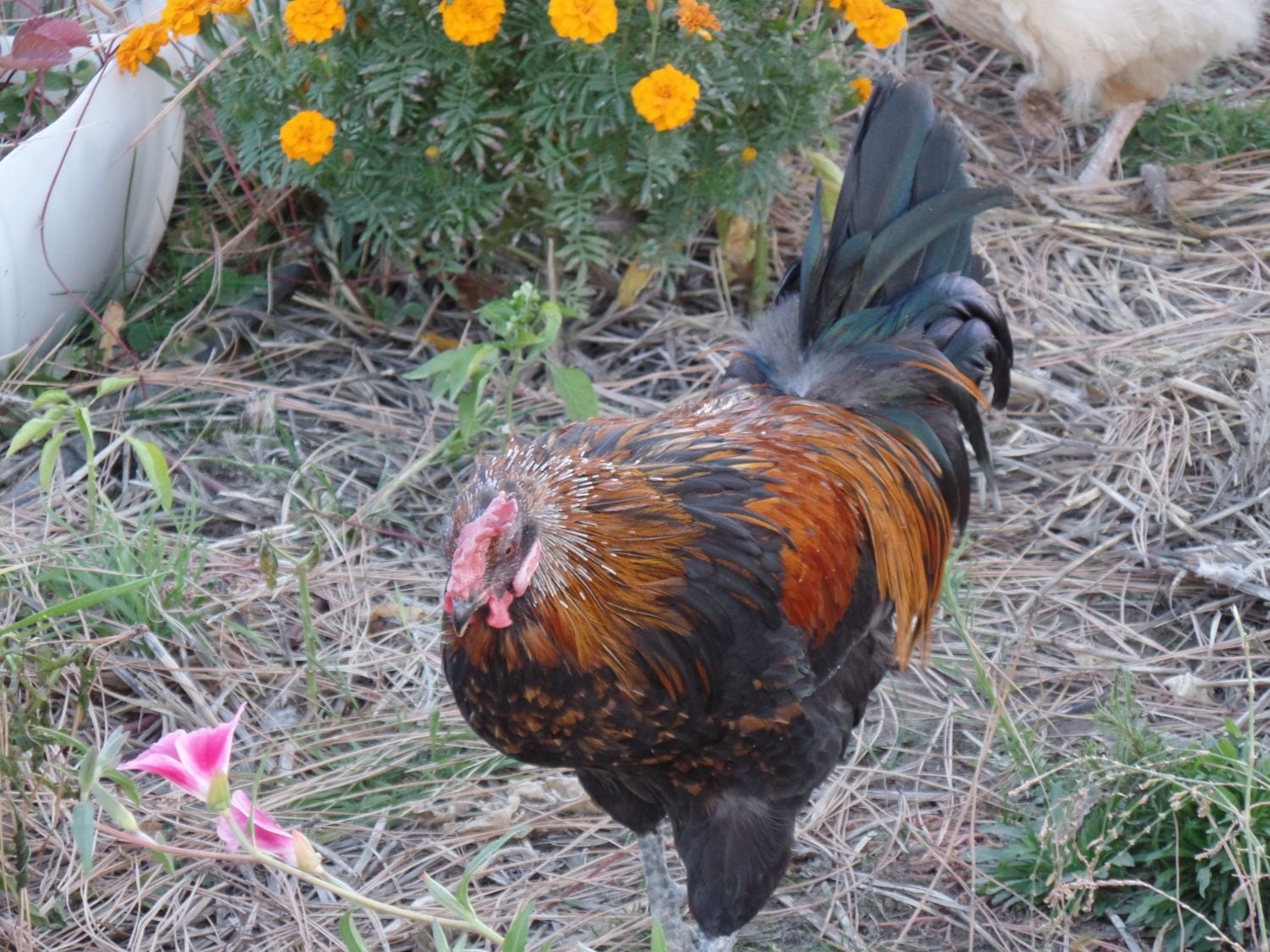 We still have 2 of our 'baby' half-Polish boys that hatched August of last year. Here are a couple of photos, but I think they are the same boy, as they are hard to tell apart.