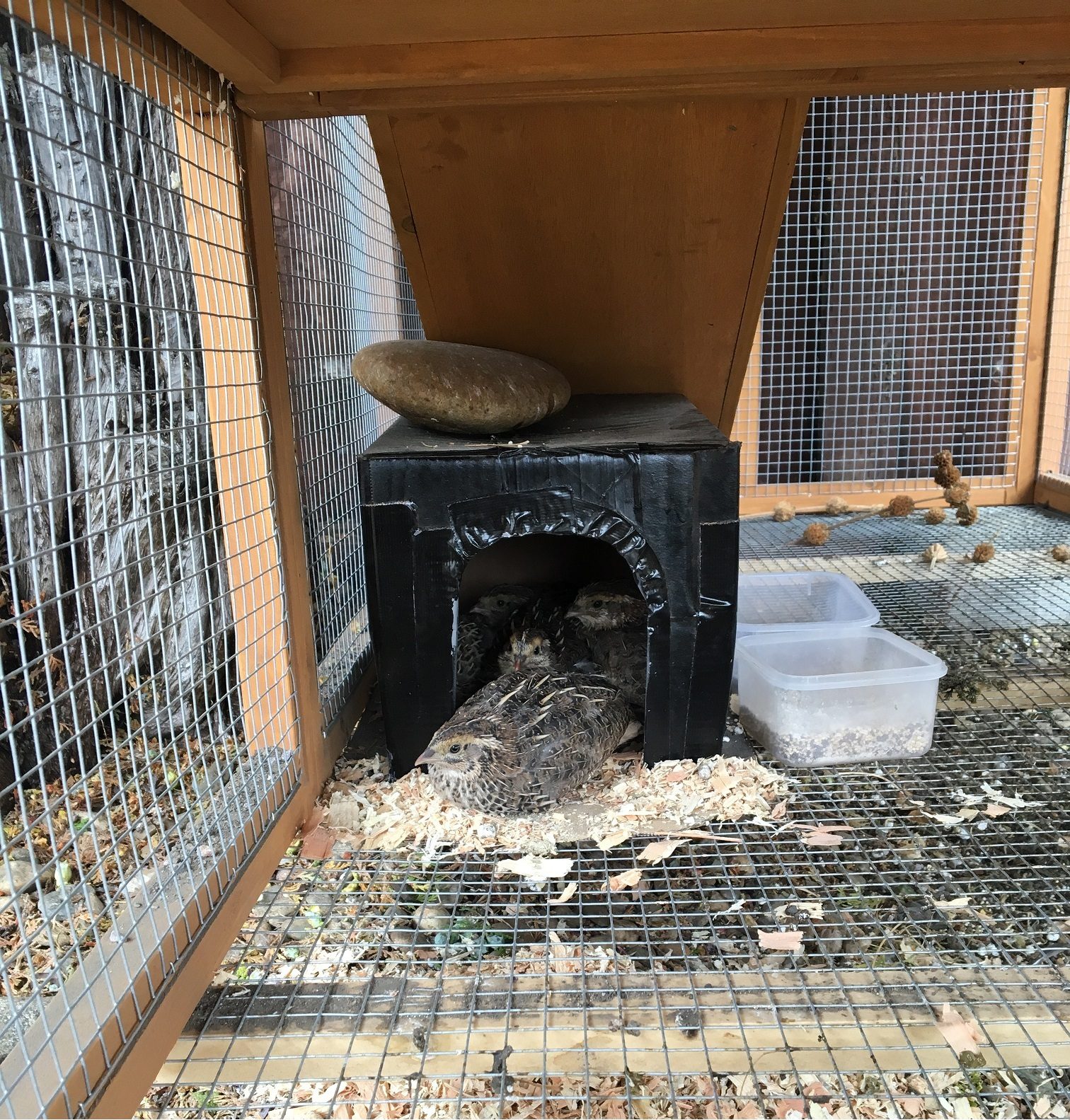 That is a wooden fruit box from nectarines at the grocery store lined with newspaper and under the "balcony" is a cardboard Pepsi bottom with sand to bathe in