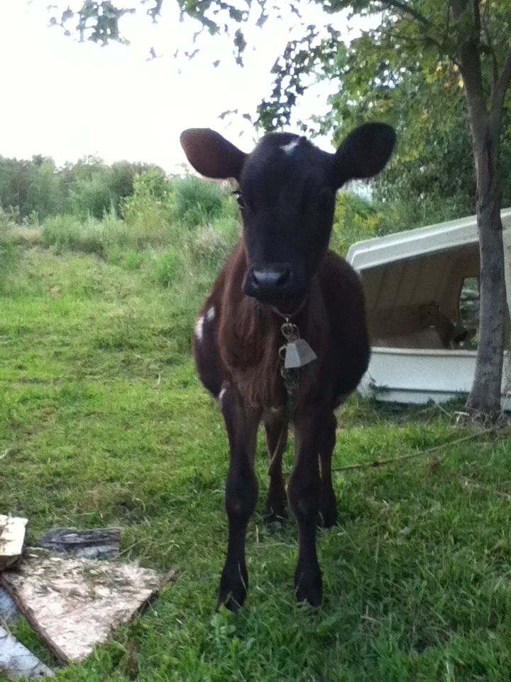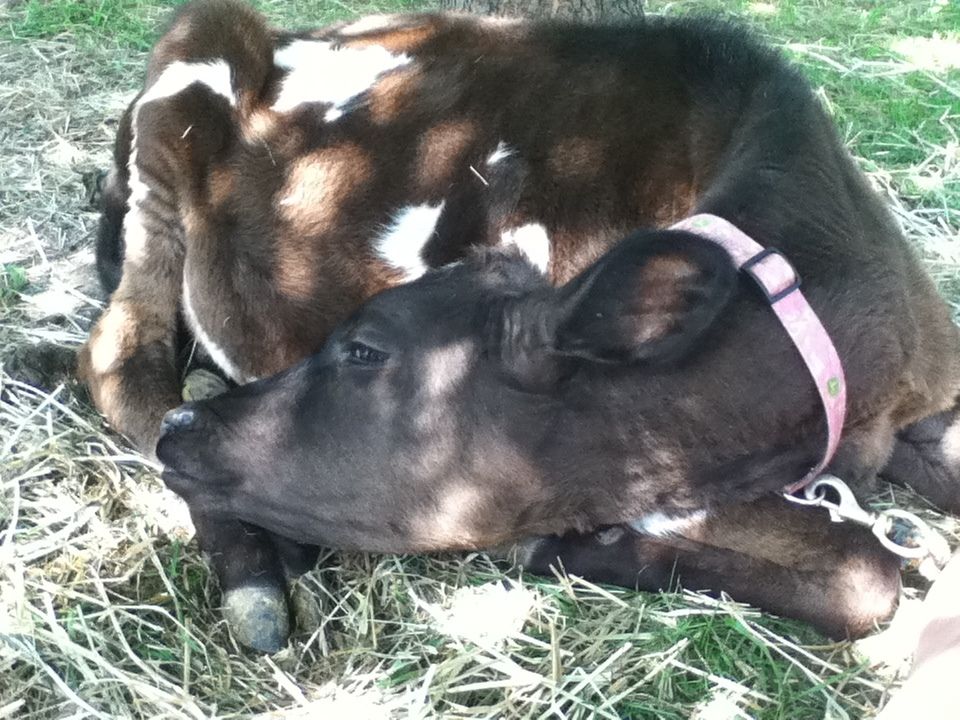 The younger heifer could have been put on hay too soon. Calves need to develop a rumen. For a dairy that feeds grain that means getting them on starter quickly to develop the rumen. Most studies say that the rumen doesn't delvope as quickly on a hay diet. Many dairies (mine included) don't supply hay until the heifer is past weaning (30-50 days at weaning) and eating a steady amount of grain/starter. The 100% grass dairies (mostly organic) usually get around the grain by feeding milk for a longer period of time, up to six months. I have heard of costs up to $1,000 just to weaning age for an organic dairy that weaned at 6 months using only their own organic milk. That's around my cost to raise a heifer for 23 months at calving! Beef calves are on momma for a while as their rumen develops.