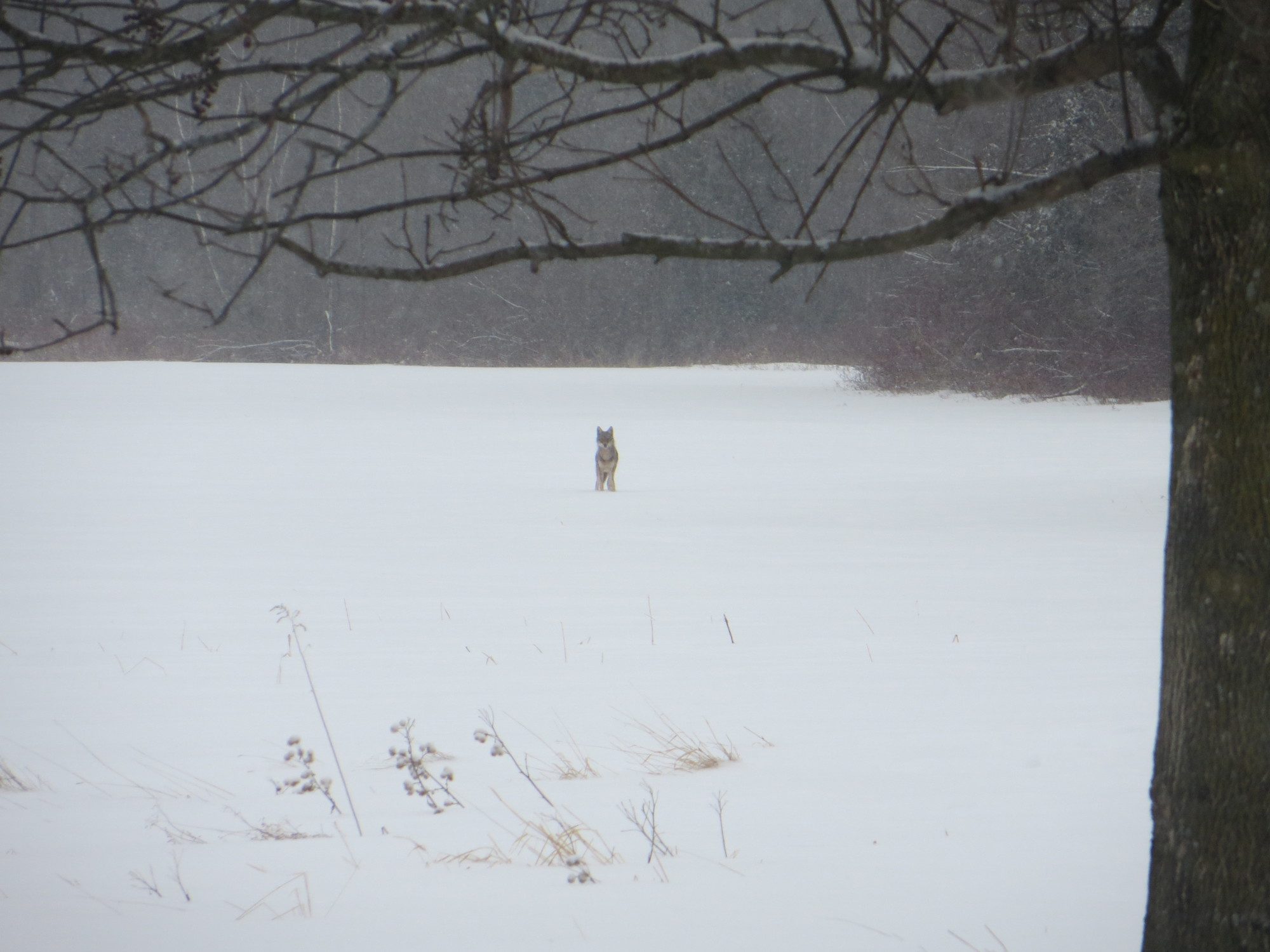 I don't believe wolves live around me but I have heard people say they do. I live near Plattsburgh, NY. I had to bring my son to his hockey game right after I took this picture and it started snowing so the tracks were covered in snow by the time we got home.