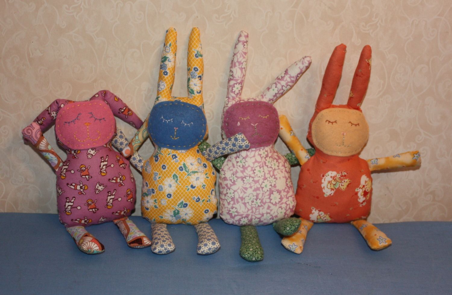 More softies! I've been thinking about selling them on Etsy, but I've always had a hard time letting go of the things I make. All handmade by me with the needle poked fingers to prove it. I sometimes use the machine to sew the bodies and larger pieces, but hand stitch the details. Never use glue of any kind. Ain't they cute?!
