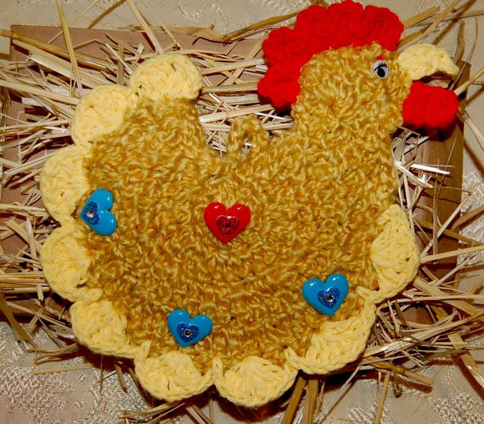 I am hoping to have a website soon to showcase my crochet potholders and also my real chickens .!