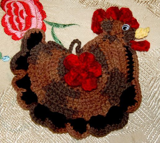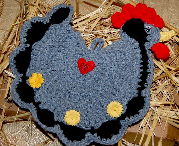 That's great !! I only have the patience to crochet small items. I am currently crocheting chicken potholders. I have a chocolate, a lavender, buff, and black. I am also starting to make cat potholders. Here are pictures of them.