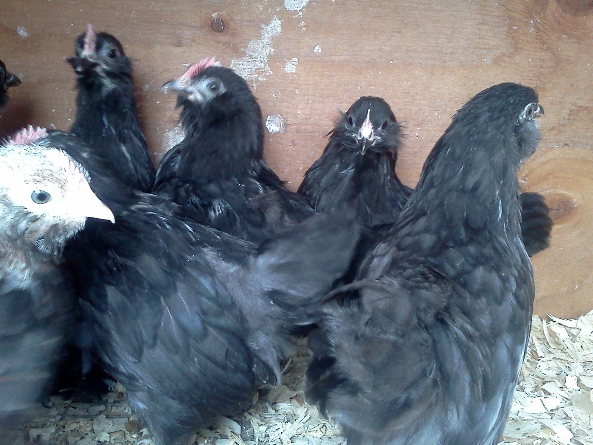 The Spalsh and Blue Cochin hens are not in with them anymore.