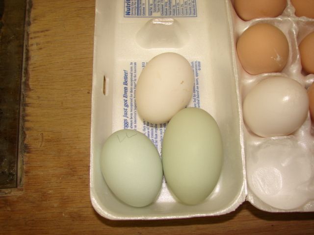Offer #4 Super Blue Egg Layers 12+ weekends collection and 6+ EE (some are eggs from the SBEL). These are a cross of my White Leghorn Pullets with my Lavender Ameraucana Roos. So far the cross is working great! I have 2 maybe 3 pullets from this cross laying and they started at about 20 weeks. All are laying a blue/green egg but they are from my EE roo not my Ameraucans. I have even gotten several double yolkers from these pullets. Starting bid $12
