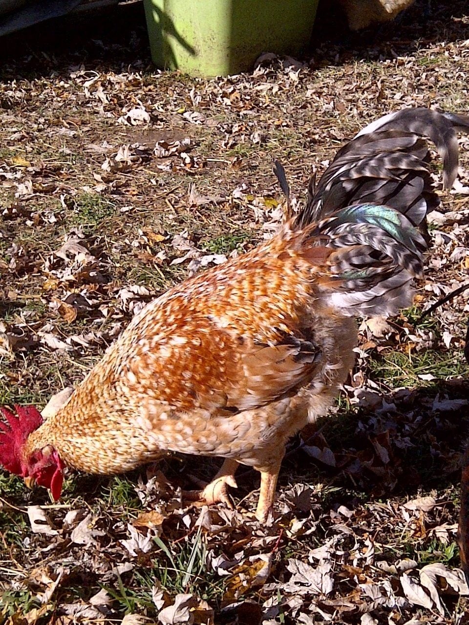 Some more of my hens this past summer. Stripped ones are ee's, black cochin bantam, white is white leghorn. My Basque Roo