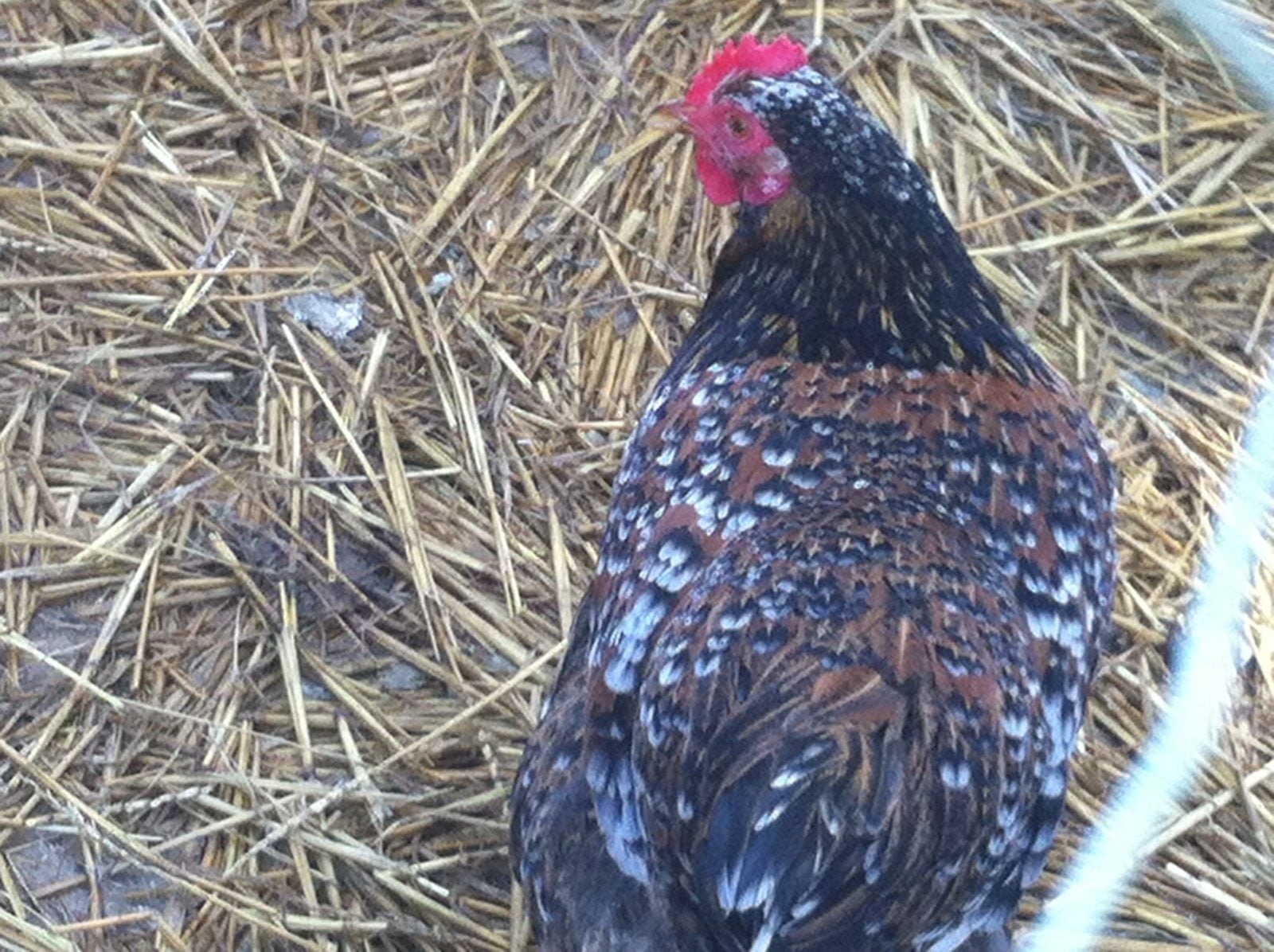 A picture of some of my hens this past summer, the dark one is Gold Laced Wy, light colored one is my Basque